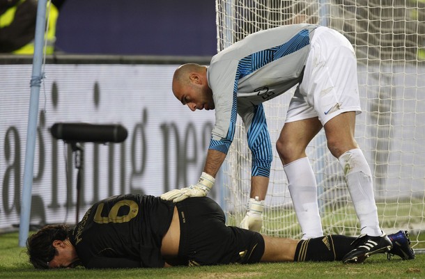 Do rướn hết sức nên Khedria đã không thể tránh được pha pha chạm với Sergio Sanchez, người đã xoài người ngăn cản cú dứt điểm của anh. Ngay sau đó, Khedira được các bác sĩ chăm sóc và phải rời sân bằng cáng với khuôn mặt thể hiện sự đau đớn.