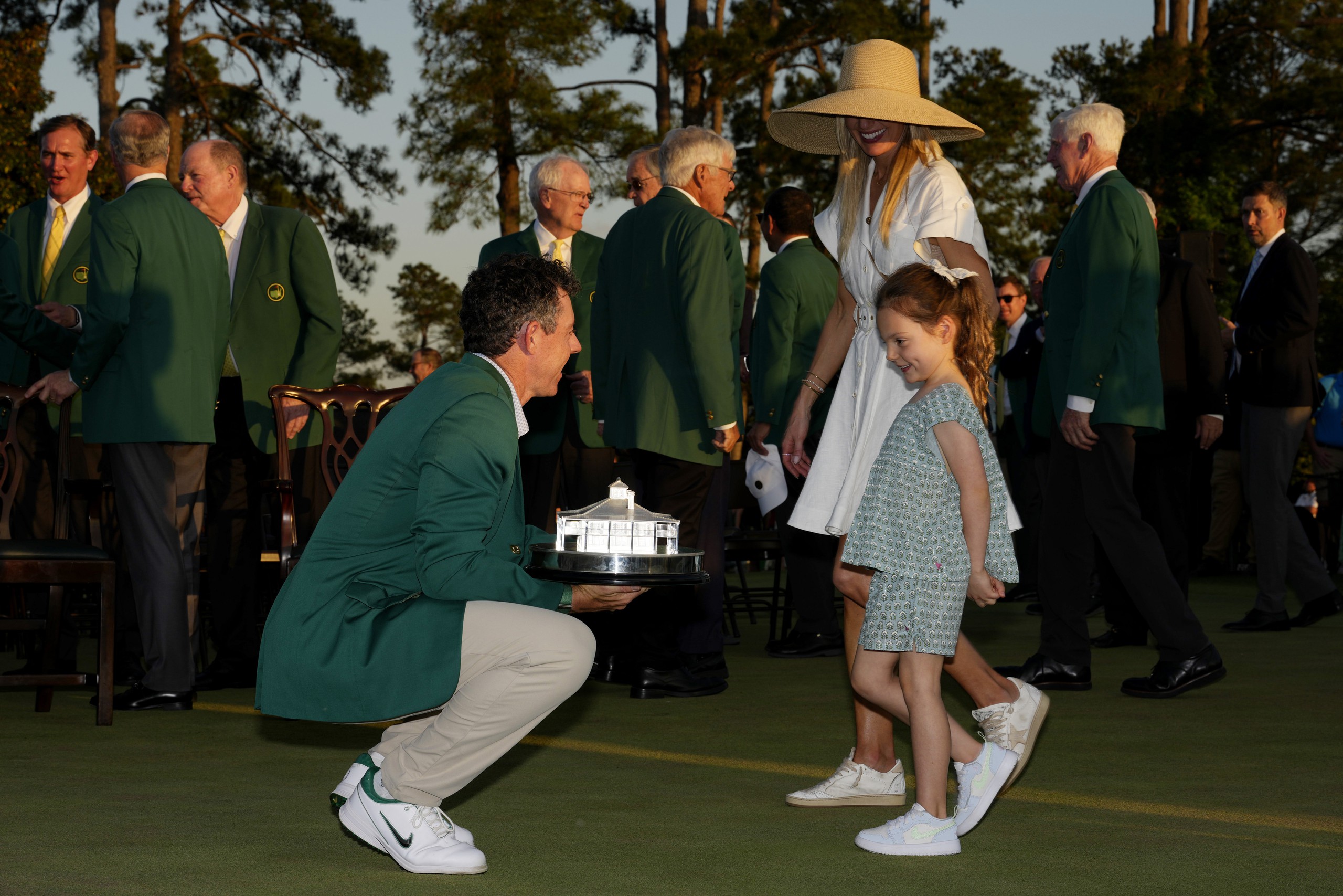 Rory McIlroy và con gái trong khoảnh khắc lịch sử tại The Masters 2026