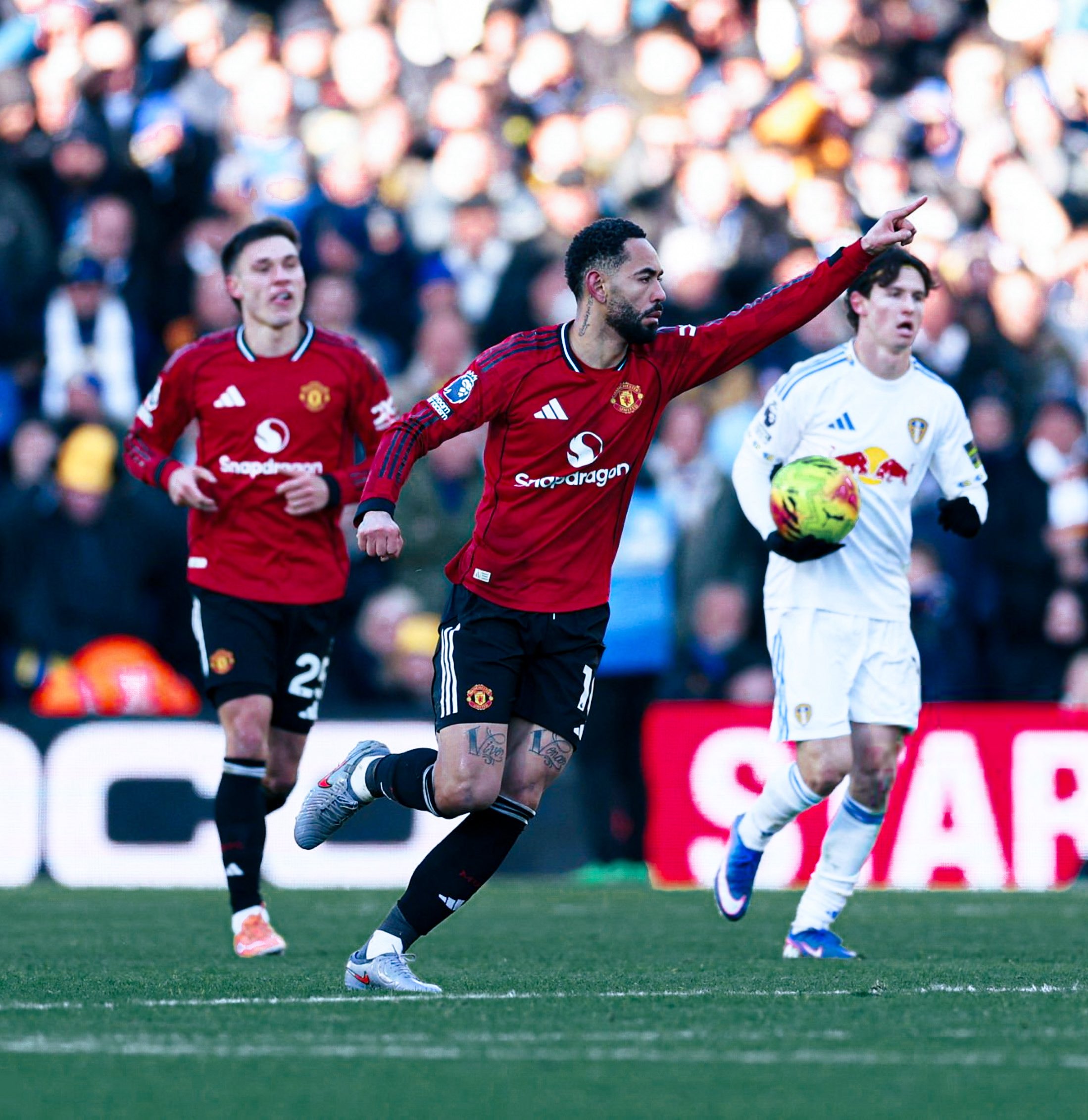 Phút 6: Ugarte đánh đầu không thành công. MU nhập cuộc khó khăn bởi những pha pressing của Leeds tỏ ra hiệu quả trong việc hạn chế khâu triển khai bóng của đối phương.