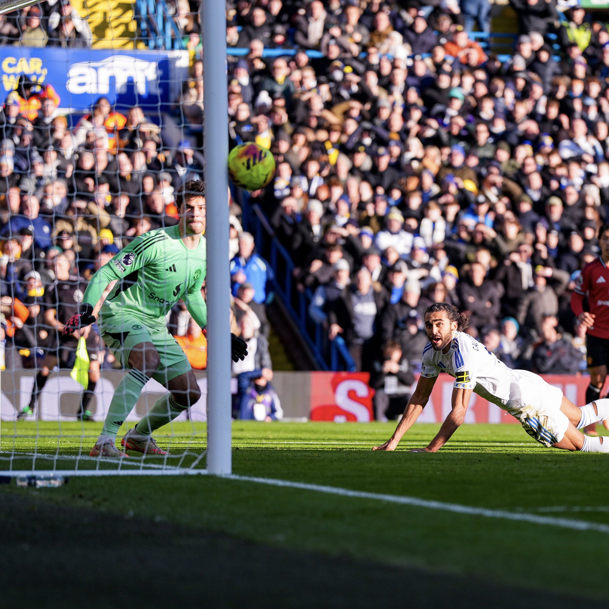 Phút 40: KHÔNG VÀO! Leny Yoro đánh đầu nguy hiểm, nhưng thủ thành Lucas Perri đã cản phá xuất sắc. MU liên tục tạo ra khó khăn trước khung thành của Leeds.