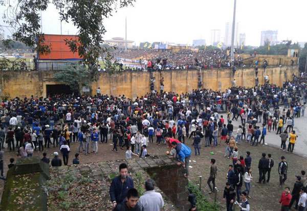 Chính vì thế ở sân Vinh chiều qua mới xảy ra hiện tượng khán giả tràn qua cả cửa số 6, chen lấn xô đẩy vào sân rồi trèo qua những hàng rào sắt vốn đã cũ kỹ để len lỏi nên các vị trí còn trống trên khán đài.