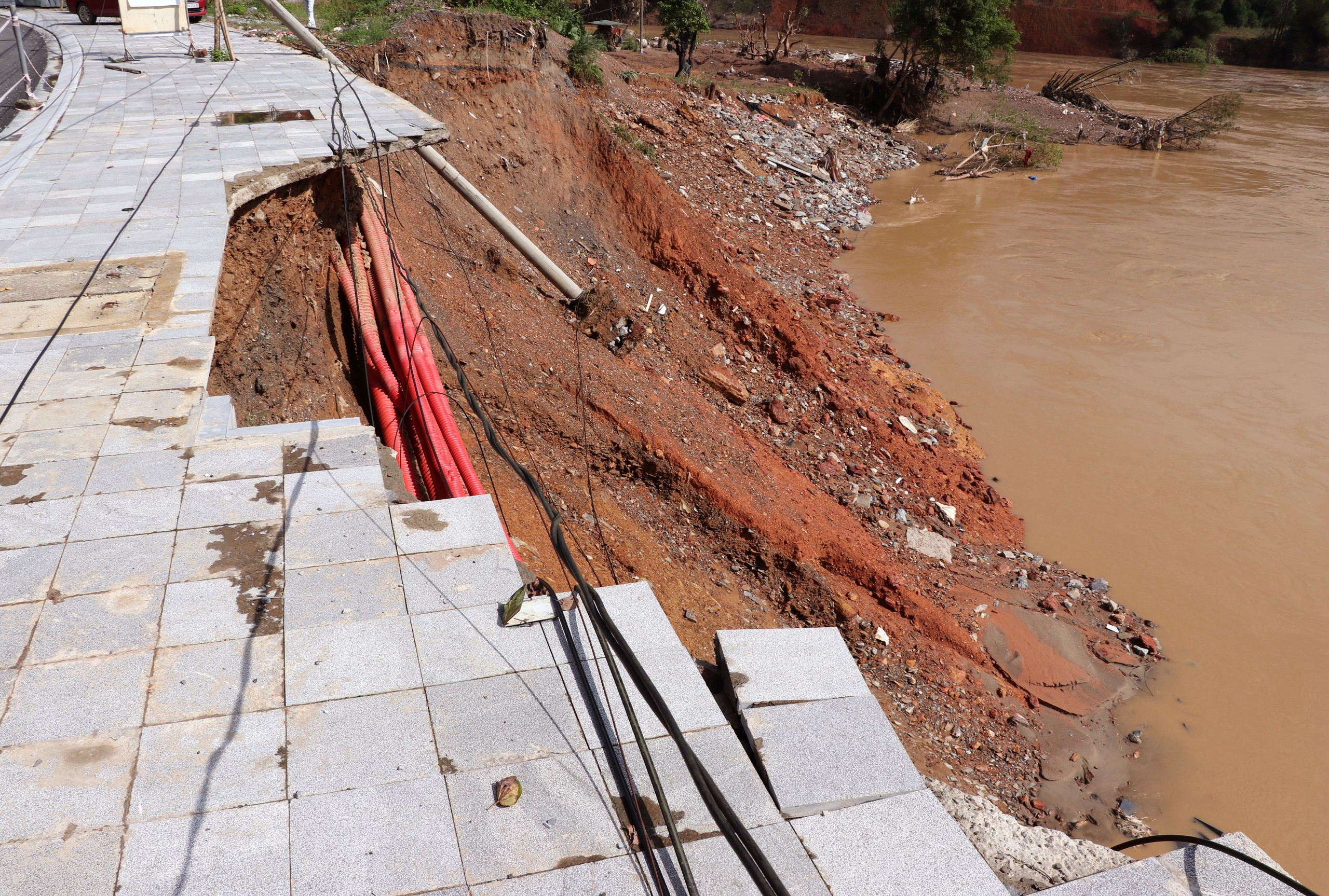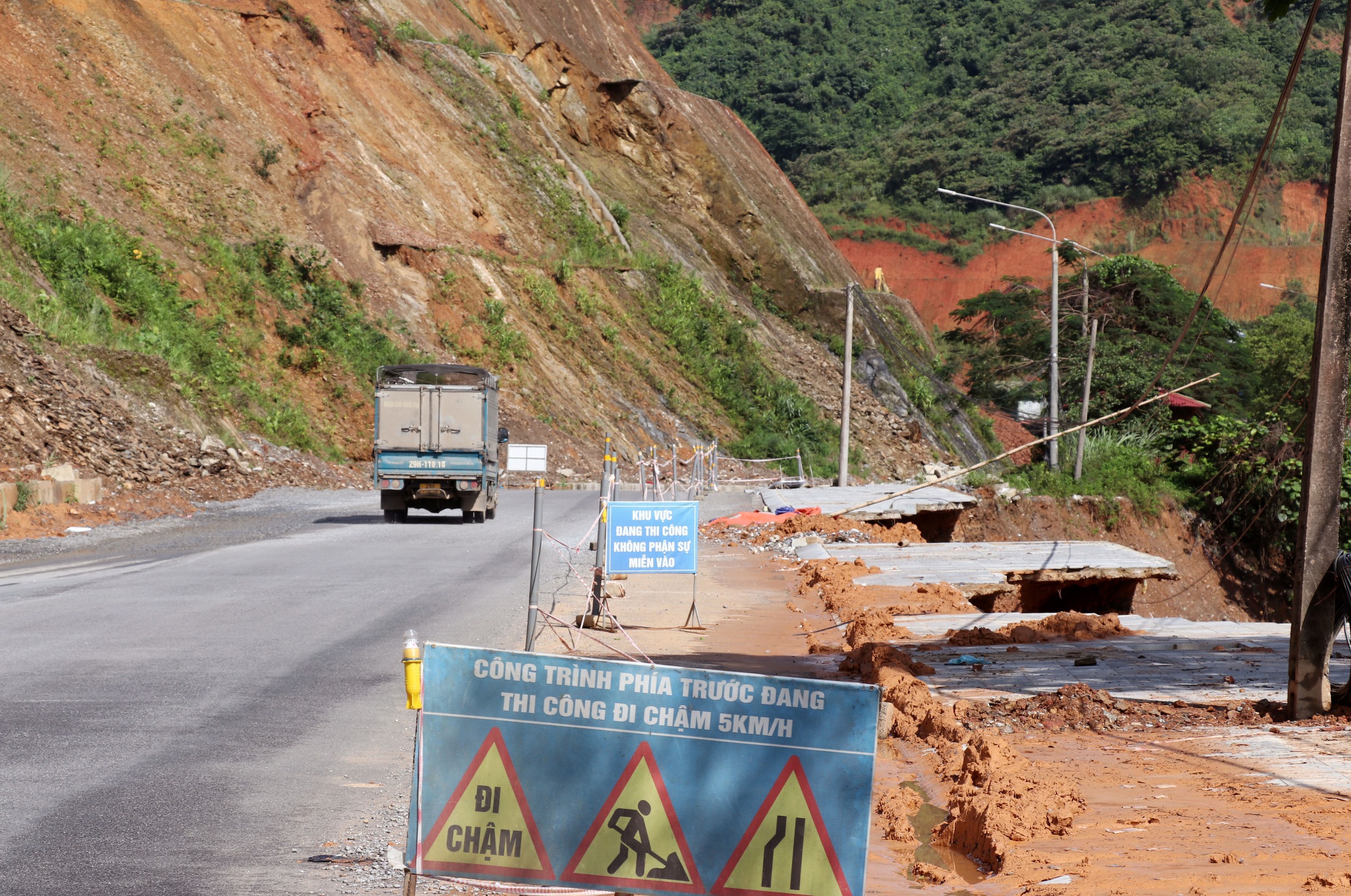 Nước lớn trên sông Lô khiến Quốc lộ 2 (đoạn qua phường Hà Giang 2, Tuyên Quang) ngày càng bị sạt lở