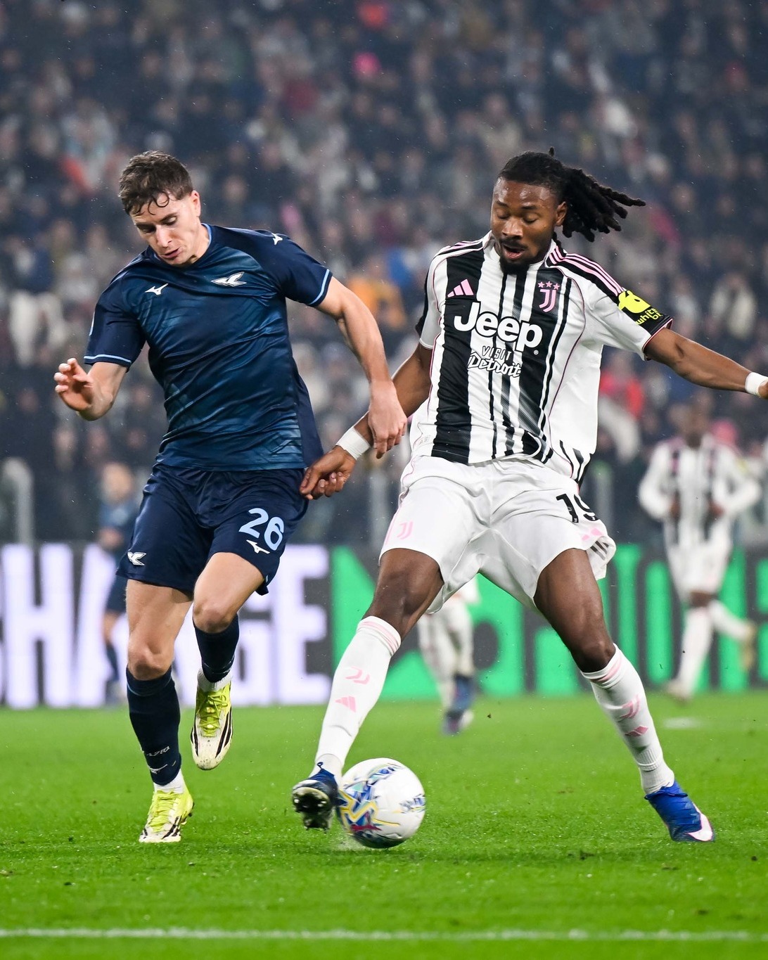 Ngay đầu hiệp hai, Allianz chìm trong im lặng khi Gustav Isaksen tận dụng đường chuyền dài, băng xuống rồi dứt điểm kỹ thuật, nâng tỷ số lên 2-0 cho Lazio. Juventus dồn lên tấn công trong thế không còn gì để mất. Kenan Yıldız liên tiếp thử vận may từ xa nhưng đều bị Provedel từ chối. Phải đến phút 59, Juventus mới tìm được bàn rút ngắn tỷ số khi Andrea Cambiaso tạt bóng chính xác để Weston McKennie đánh đầu lập công. Trận đấu trở nên giằng co nghẹt thở ở những phút cuối, khi cả hai đội đều có cơ hội nhưng không tận dụng thành công.