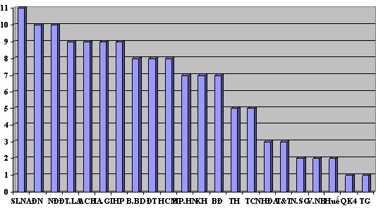 (TT&VH) - Biểu đồ thống kê dưới đây cho thấy trong số 22 đội bóng đã từng chơi tại V-League từ trước đến nay, chỉ có duy nhất SLNA là đội bóng đã tham dự đủ cả 11 mùa giải chuyên nghiệp. Vì thế, đương nhiên SLNA là đội bóng giàu truyền thống bậc nhất V-League hiện nay và các CĐV xứ Nghệ vẫn tự hào về điều đó (và hoàn toàn xứng đáng được tự hào), nhất là sau khi SLNA vừa giành chức vô địch V-League 2011.