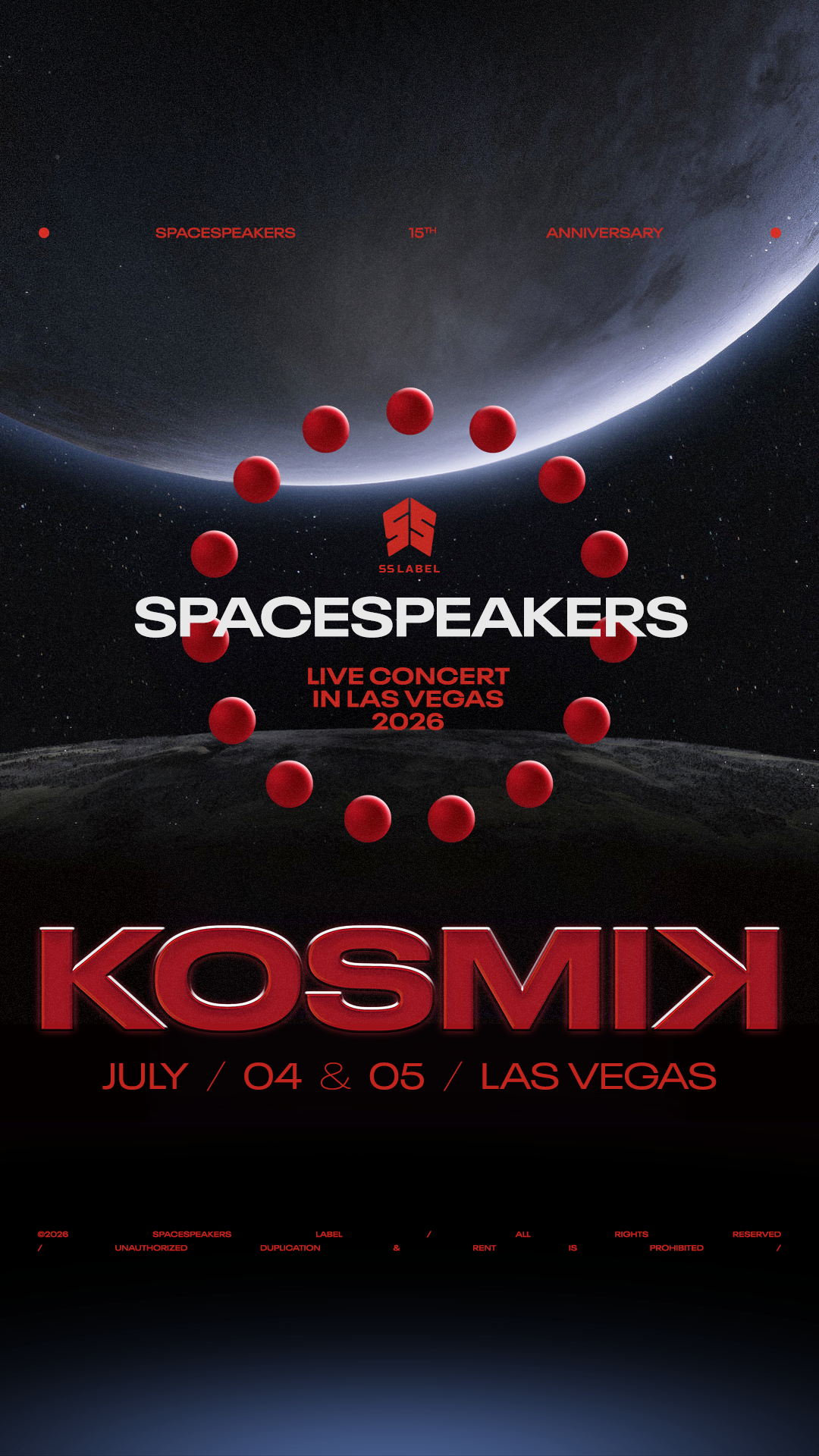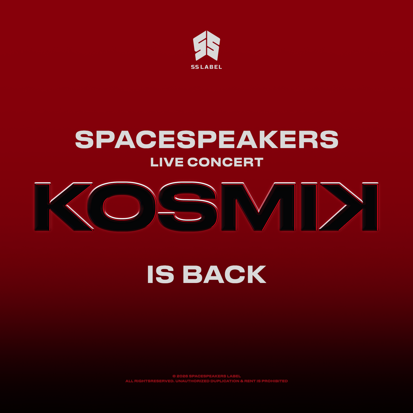 SpaceSpeakers Label (SS Label) vừa công bố đầy đủ dàn nghệ sĩ tham gia KOSMIK Live Concert 2026 – chương trình kỷ niệm 15 năm hoạt động của SpaceSpeakers. Sự kiện diễn ra trong hai đêm 4–5/7 tại Las Vegas (Mỹ), với sự góp mặt của SOOBIN cùng toàn bộ nghệ sĩ của SS Label và nhiều khách mời đình đám.