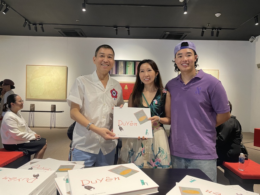 Lê Thiết Cương (bìa trái) tại triển lãm “Duyên” đang diễn ra tại TP.HCM