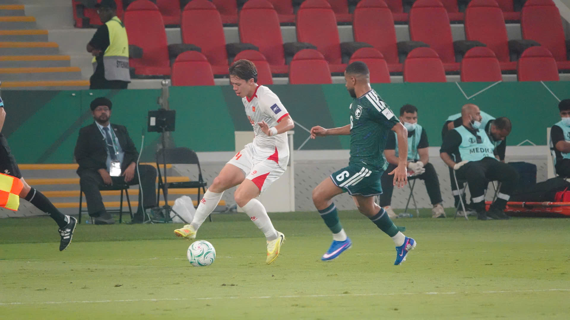 58': KHÔNG VÀO! Thái Sơn dứt điểm tuyến 2 nhưng bóng đi thiếu chính xác. U23 Việt Nam đã khiến hàng thủ của U23 Saudi Arabia bối rối trong những phút vừa qua.