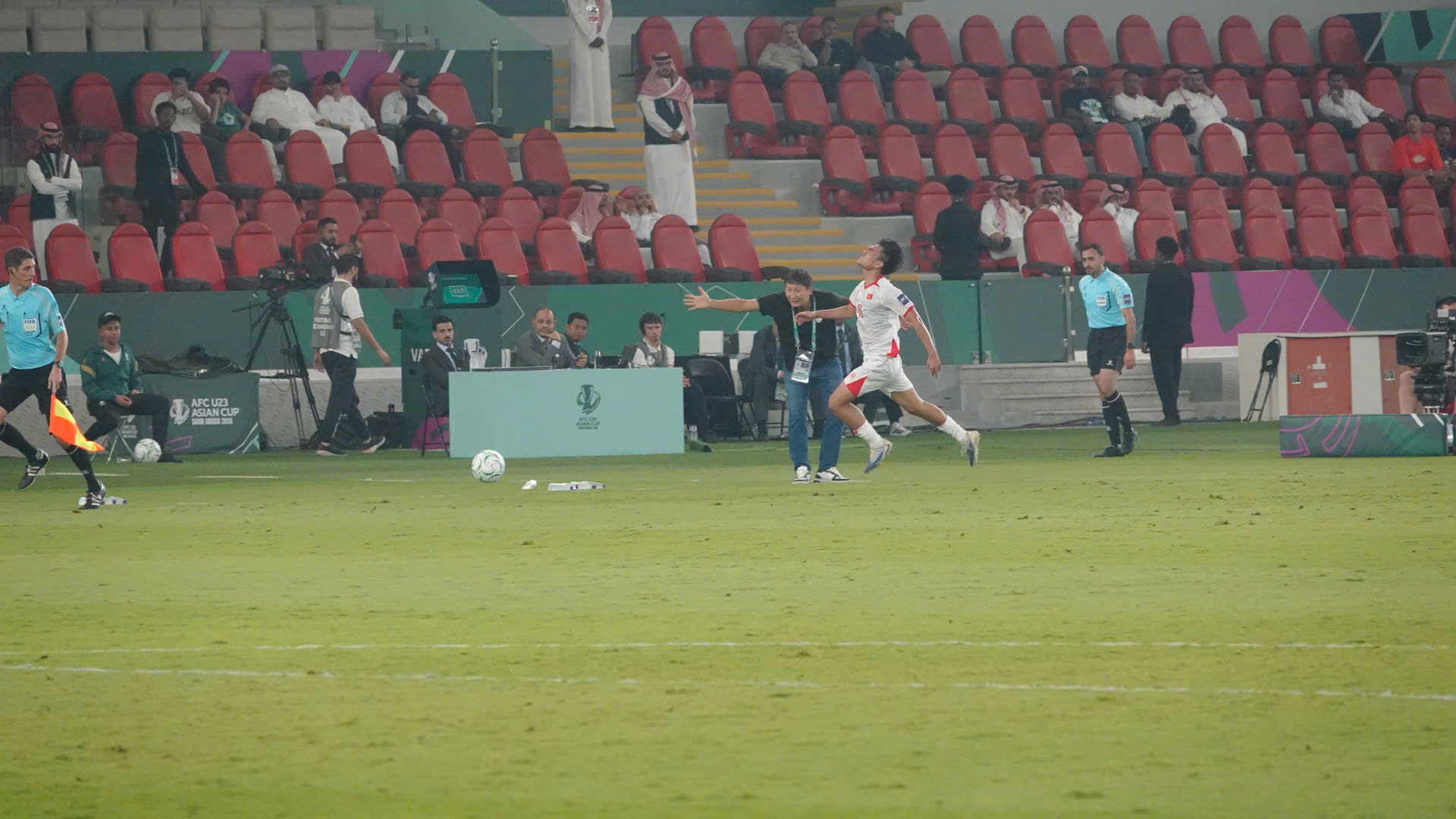 12': U23 Saudi Arabia đang cố gắng tấn công nhưng họ vấp phải hàng thủ chơi chắc chắn của U23 Việt Nam. Các học trò của HLV Kim Sang Sik vẫn tỏ ra tự tin trước sức ép của đội chủ nhà.