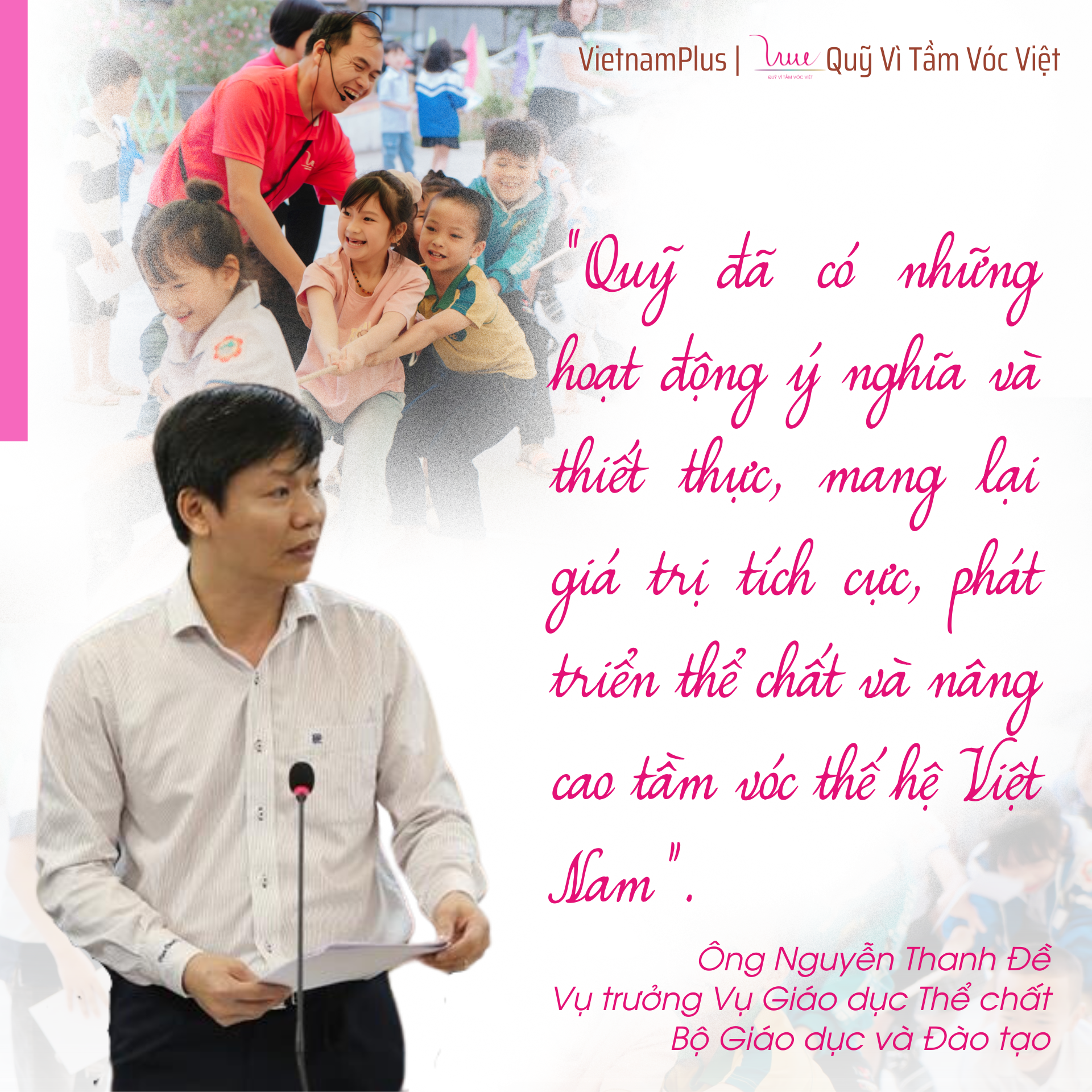 “Quỹ đã có những hoạt động ý nghĩa và thiết thực, mang lại giá trị tích cực, phát triển thể chất và nâng cao tầm vóc thế hệ Việt Nam”, ông Đề chia sẻ.