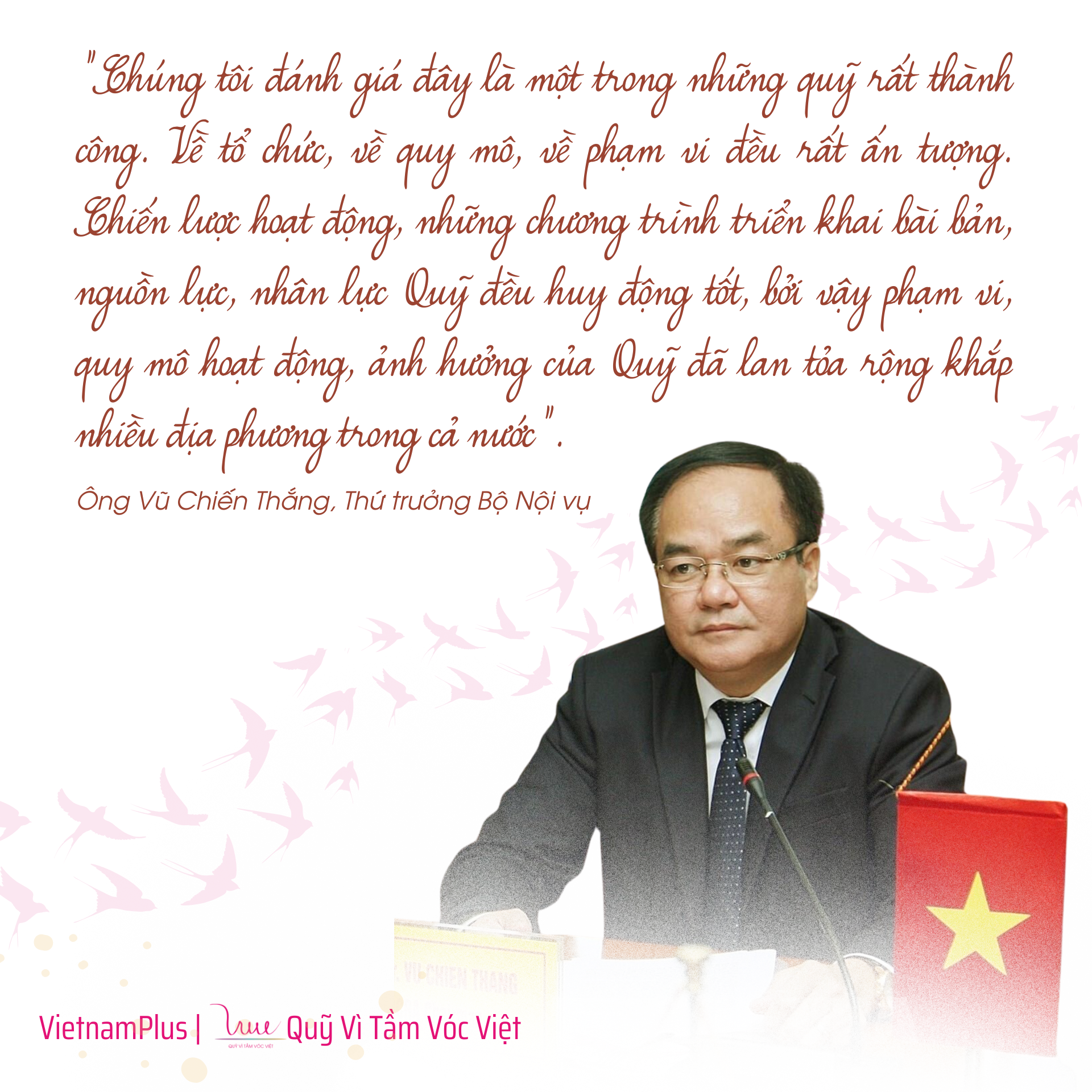 “Quỹ Vì Tầm Vóc Việt như một người bạn đồng hành với Hội Liên hiệp Phụ nữ Việt Nam trong các hoạt động thúc đẩy vì sự phát triển của phụ nữ, chăm lo bảo vệ quyền và lợi ích hợp pháp của phụ nữ trên khắp mọi miền Tổ quốc”, đại diện Hội Liên hiệp Phụ nữ Việt Nam chia sẻ.
