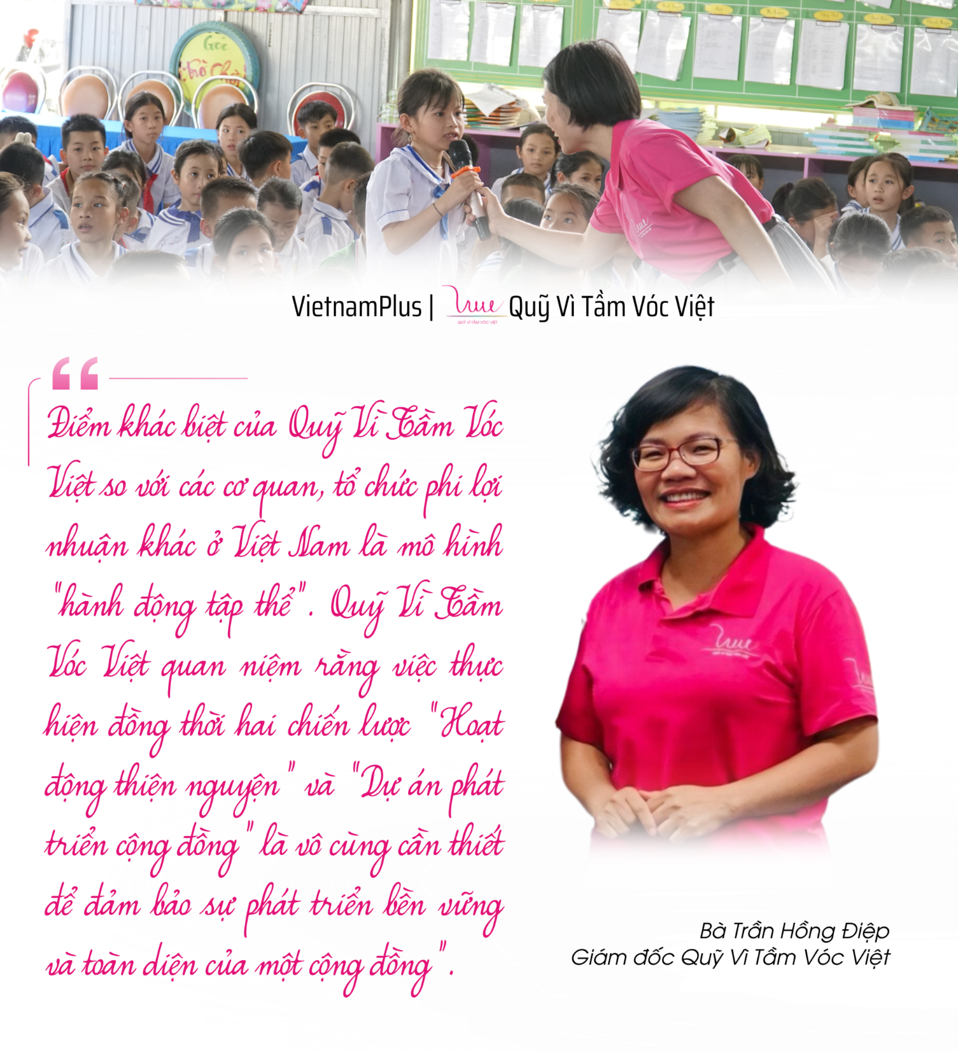 Bà Trần Hồng Điệp, Giám đốc Quỹ Vì Tầm Vóc Việt chia sẻ, điểm khác biệt của Quỹ so với các cơ quan, tổ chức phi lợi nhuận khác ở Việt Nam là mô hình “hành động tập thể”.