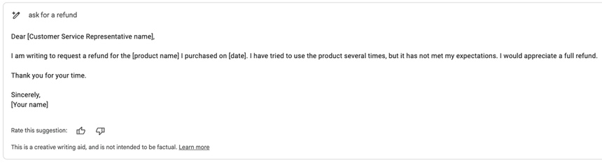 Trong video trình diễn tại sự kiện Google I/O, người dùng đã nhập “yêu cầu hoàn tiền” vào và thuật toán mới Gmail đã viết ra một bức thư tương đối chi tiết, yêu cầu hãng hàng không hoàn lại tiền chuyến bay đã bị hủy.