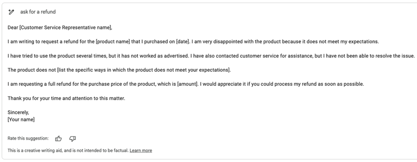 Email thứ nhất do thuật toán của Gmail soạn thảo, truy vấn “yêu cầu hoàn tiền”: