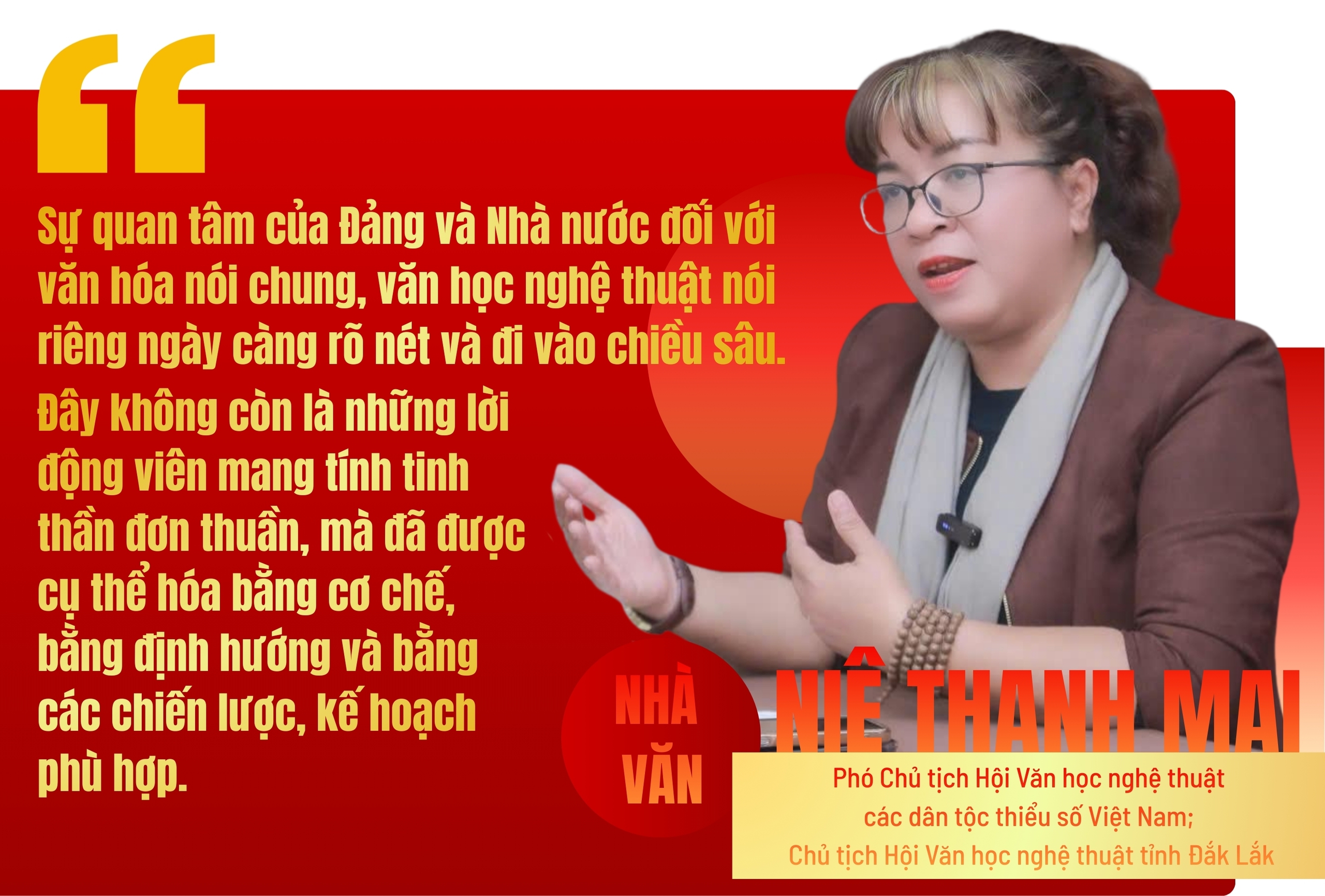 - Thực ra, không chỉ thời gian gần đây mà từ trước đó, tại Đắk Lắk - nơi tôi công tác và sinh sống - các cơ quan, ban, ngành đều rất quan tâm đến lĩnh vực văn học, nghệ thuật. Đặc biệt, đối với hoạt động sáng tác về đề tài dân tộc thiểu số của Hội Văn học nghệ thuật tỉnh, chúng tôi nhận được sự quan tâm khá rõ nét.