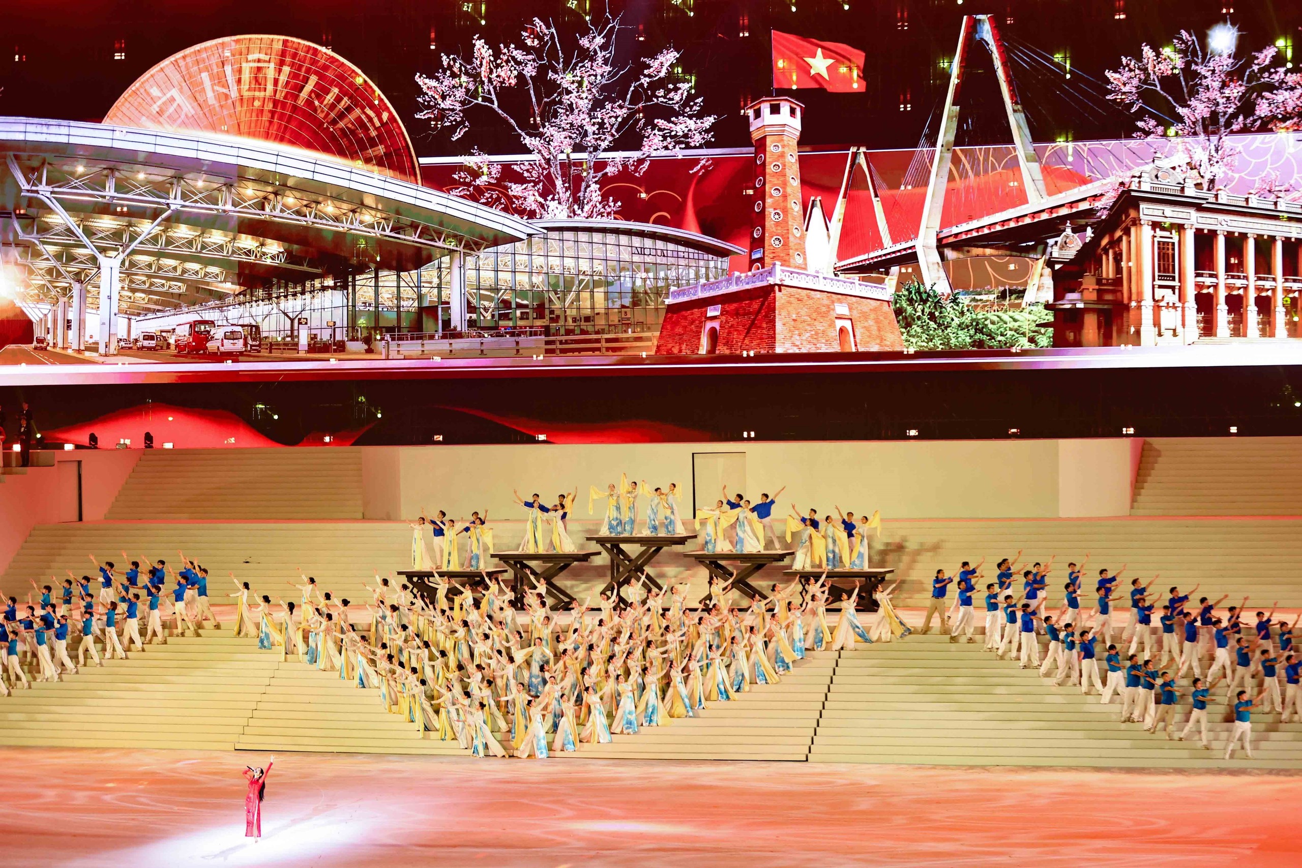 Chương trình nghệ thuật đặc biệt "Dưới lá cờ vẻ vang của Đảng” chào mừng thành công Đại hội XIV của Đảng diễn ra tối 23/1/2026, tại sân vận động quốc gia Mỹ Đình (Hà Nội). Ảnh: TTXVN