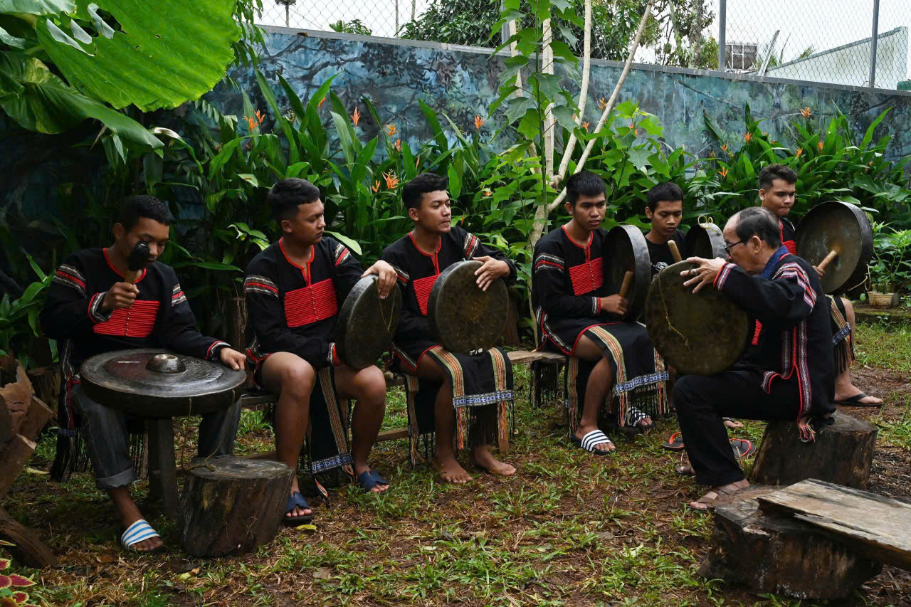 Chương trình tập huấn múa dân gian cho thanh thiếu niên tại các buôn làng tỉnh Đắk Lắk do Hội Văn học nghệ thuật tỉnh Đắk Lắk tổ chức. Ảnh: NSNA Quang Khải