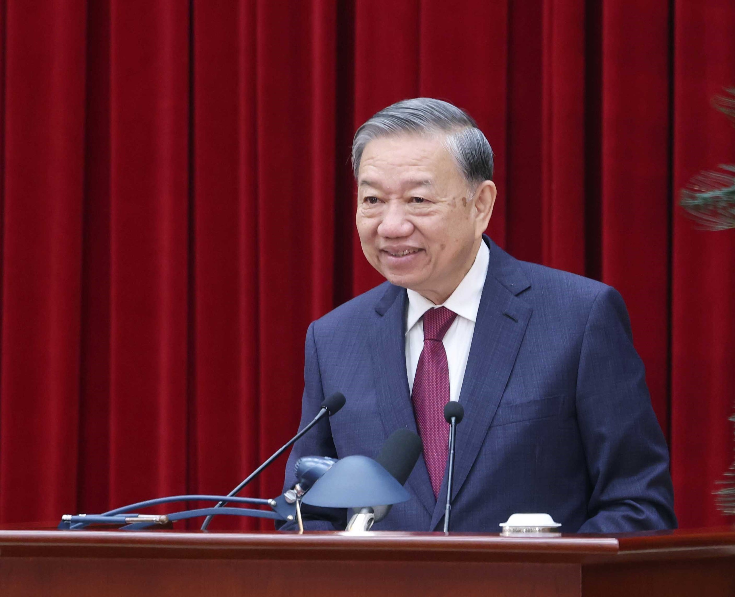 Tổng Bí thư Tô Lâm phát biểu bế mạc Hội nghị lần thứ 14 Ban Chấp hành Trung ương Đảng khóa XIII. Ảnh: Thống Nhất - TTXVN