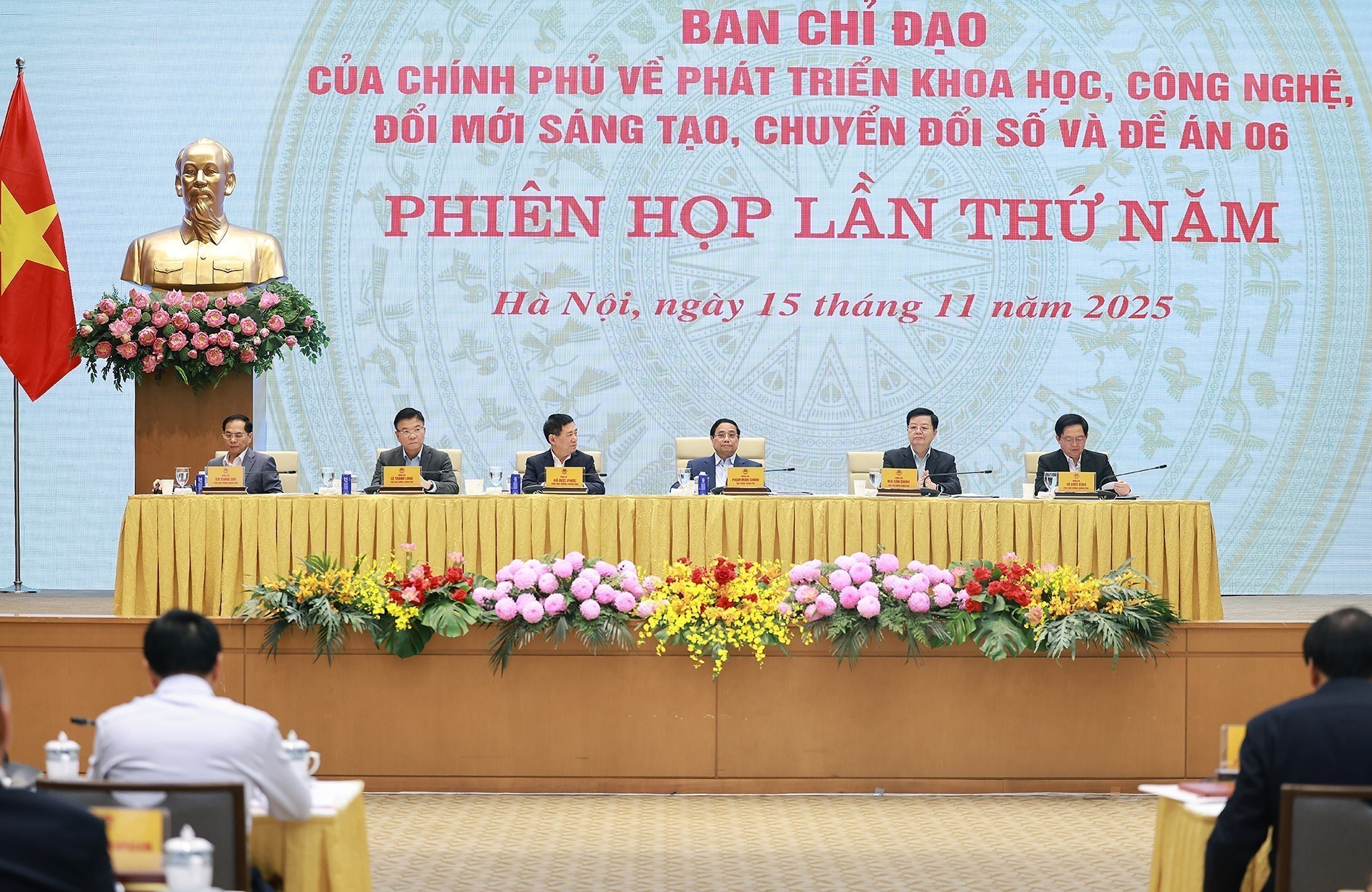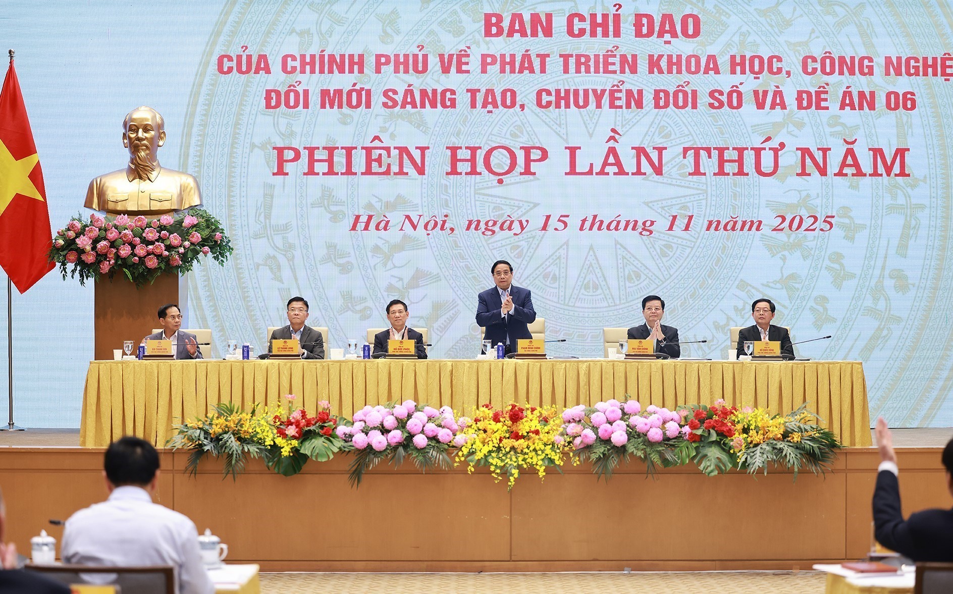 Sáng 15/11/2025, tại Hà Nội, Thủ tướng Phạm Minh Chính, Trưởng Ban Chỉ đạo của Chính phủ về phát triển khoa học, công nghệ, đổi mới sáng tạo, chuyển đổi số và Đề án 06 (Ban Chỉ đạo) chủ trì phiên họp lần thứ năm.