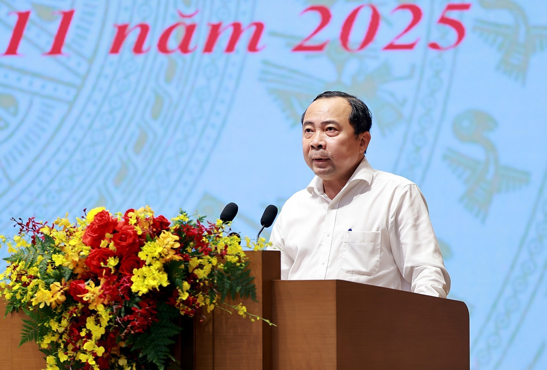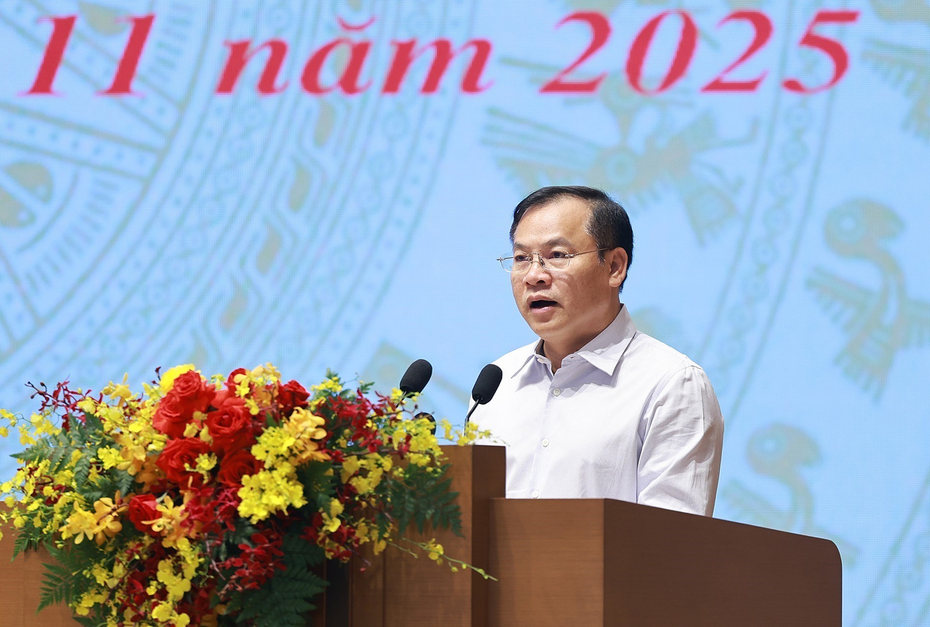 Thứ trưởng Thường trực Bộ Khoa học và Công nghệ Vũ Hải Quân báo cáo kết quả thực hiện các nhiệm vụ phát triển khoa học, công nghệ, đổi mới sáng tạo và chuyển đổi số quốc gia và các nhiệm vụ trọng tâm đến hết năm 2025