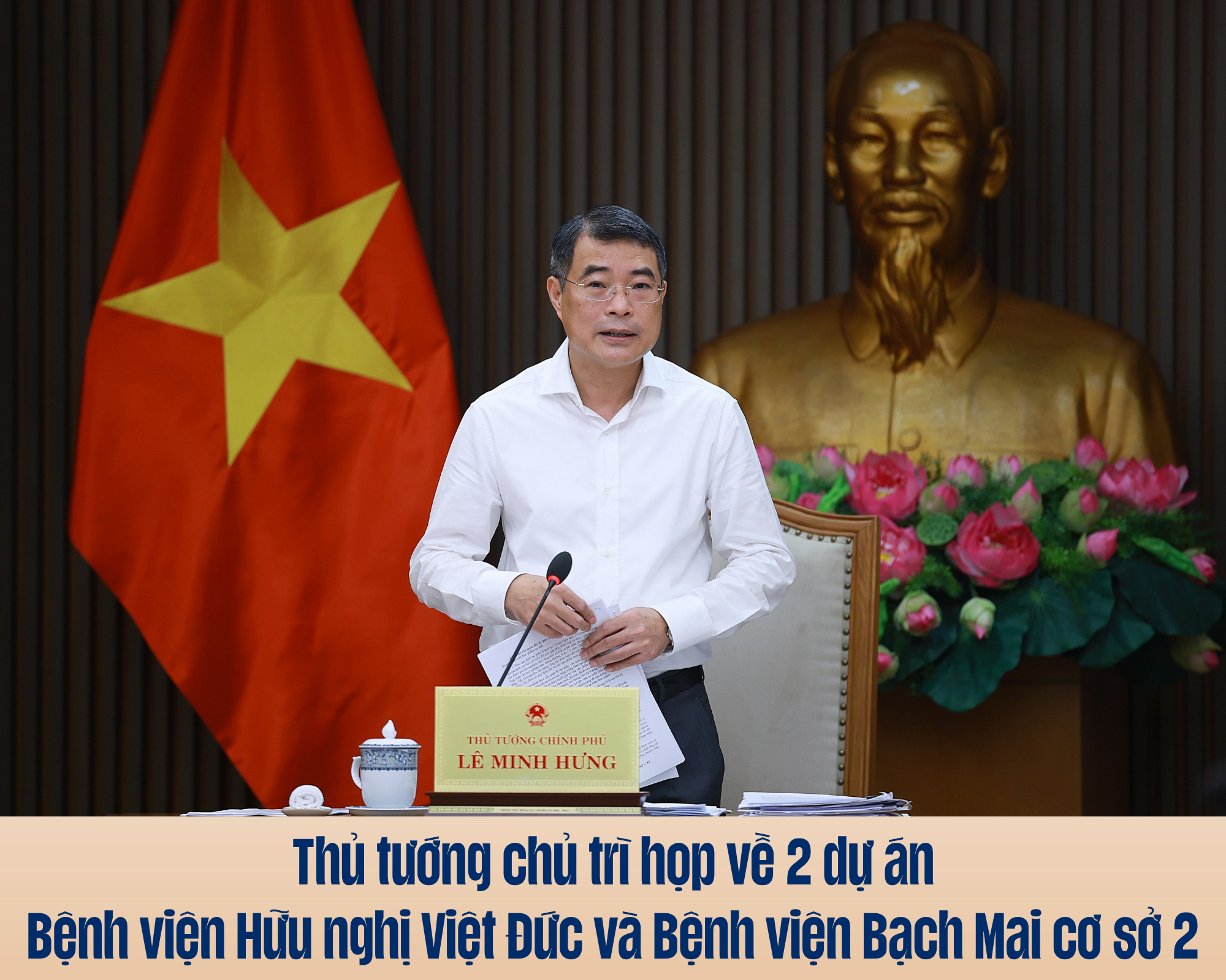 Sáng 14/4/2026, tại Trụ sở Chính phủ, Thủ tướng Lê Minh Hưng chủ trì cuộc họp của Thường trực Chính phủ với lãnh đạo Bộ Y tế về tình hình thực hiện nhiệm vụ được giao và bàn giải pháp tháo gỡ vướng mắc Dự án đầu tư xây dựng cơ sở 2 Bệnh viện Hữu nghị Việt Đức và Dự án đầu tư xây dựng cơ sở 2 Bệnh viện Bạch Mai tại tỉnh Ninh Bình.