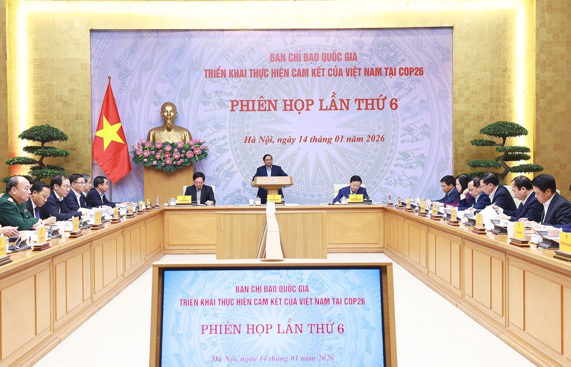 Chiều 14/1/2026, tại Hà Nội, Thủ tướng Phạm Minh Chính, Trưởng Ban Chỉ đạo quốc gia triển khai thực hiện cam kết của Việt Nam tại Hội nghị lần thứ 26 các bên tham gia Công ước khung của Liên hợp quốc về biến đổi khí hậu (Ban Chỉ đạo) chủ trì phiên họp lần thứ 6 của Ban Chỉ đạo.