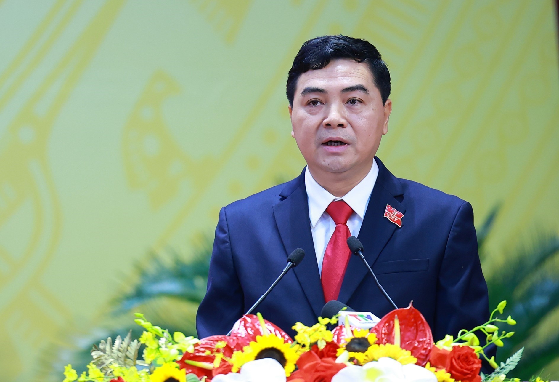 Đồng chí Nguyễn Hoài Anh, Phó Bí thư Tỉnh ủy Thanh Hóa, Chủ tịch UBND tỉnh Thanh Hóa trình bày báo cáo kiểm điểm của BCH Đảng bộ tỉnh nhiệm kỳ 2020-2025. Ảnh: Dương Giang - TTXVN