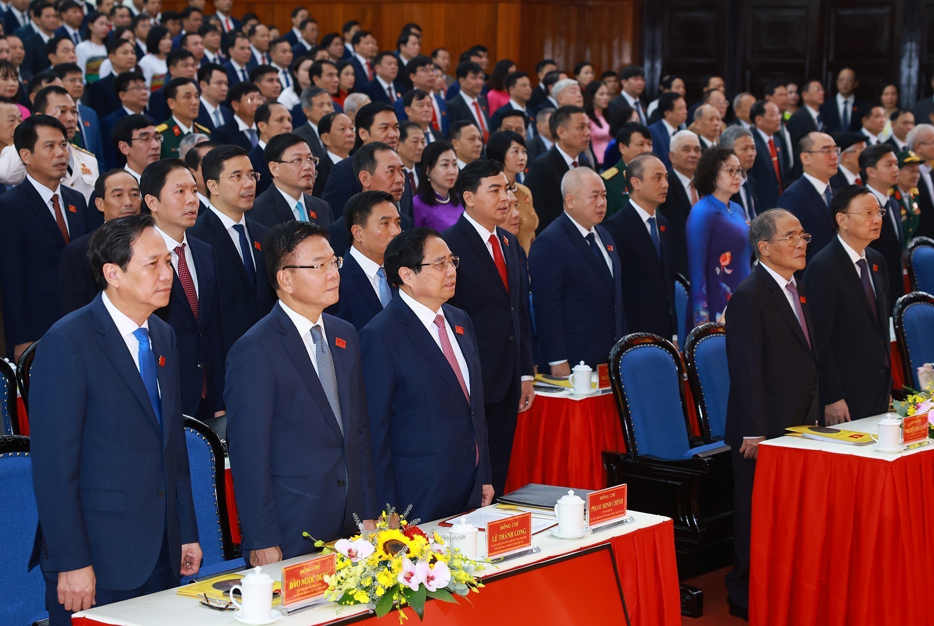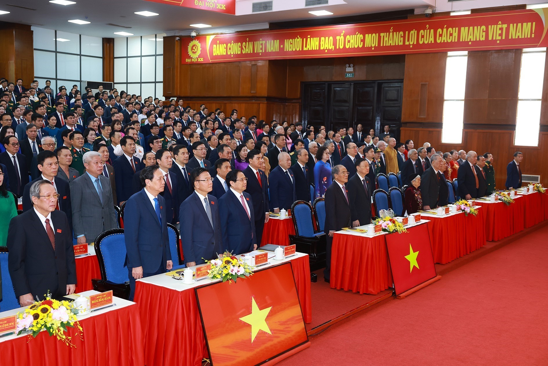 Đồng chí Phạm Minh Chính, Ủy viên Bộ Chính trị, Bí thư Đảng ủy, Thủ tướng Chính phủ đến dự và chỉ đạo Đại hội đại biểu Đảng bộ tỉnh Thanh Hoá lần thứ 20. Ảnh: Dương Giang - TTXVN
