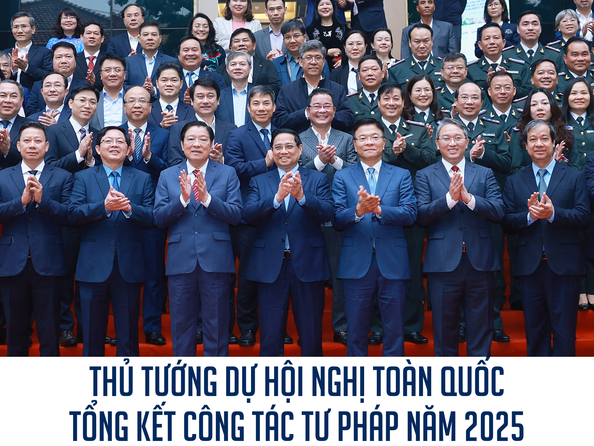 Thủ tướng Phạm Minh Chính với các đại biểu dự Hội nghị toàn quốc tổng kết công tác Tư pháp năm 2025