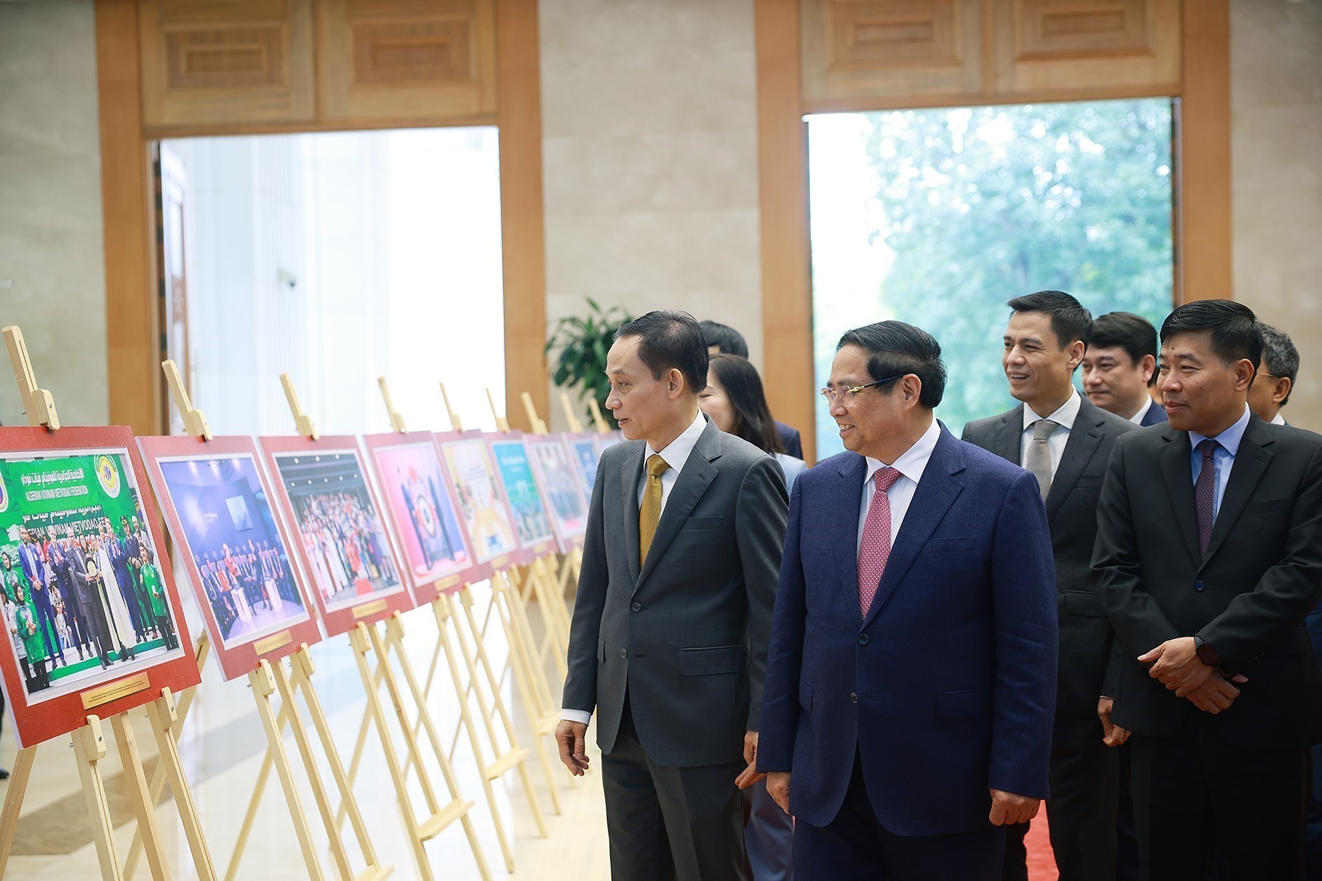 Thủ tướng Phạm Minh Chính tham quan Triển lãm ảnh về thành tựu ngoại giao. Ảnh: Dương Giang-TTXVN