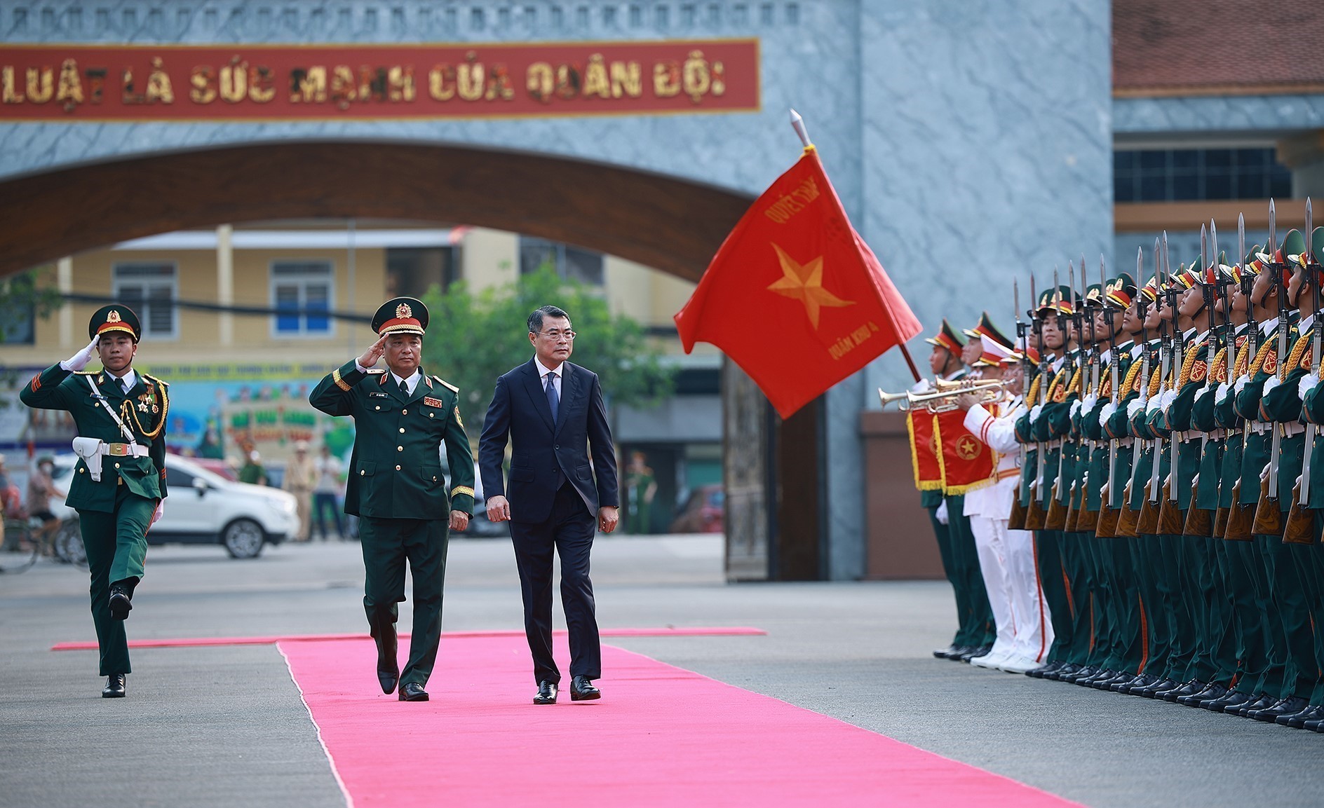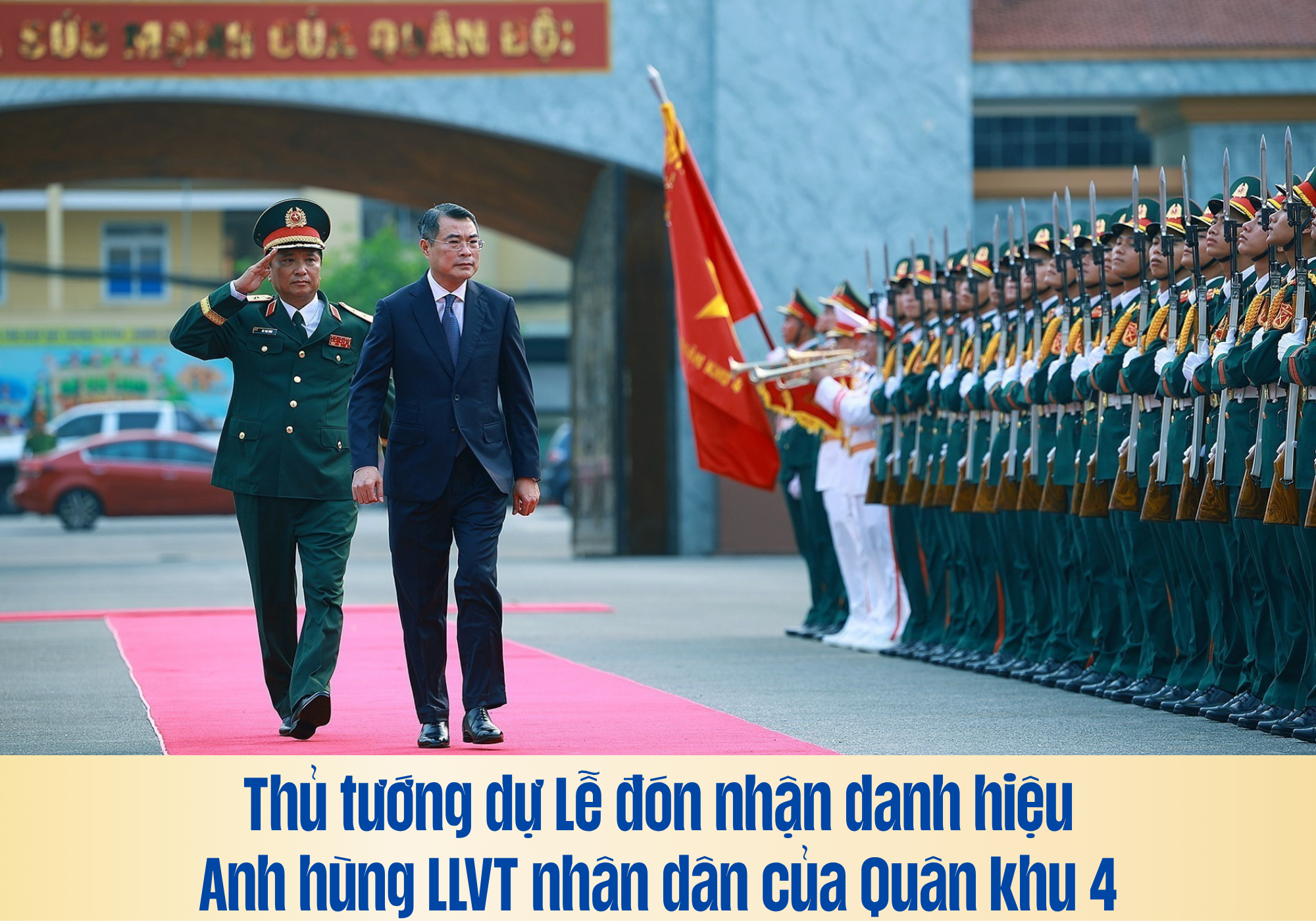 Thủ tướng Lê Minh Hưng đến dự Lễ đón nhận danh hiệu Anh hùng Lực lượng vũ trang nhân dân của Quân khu 4
