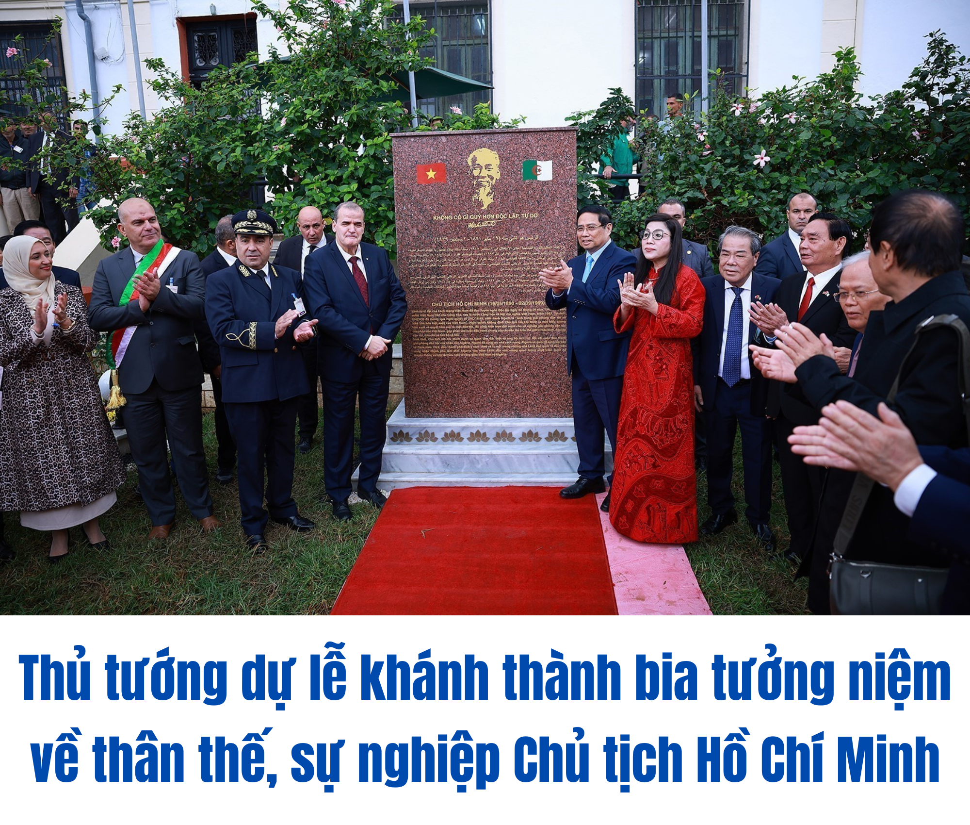 Trong chương trình thăm chính thức Algeria, sáng 20/11 theo giờ địa phương, tại thủ đô Algiers, Thủ tướng Chính phủ Phạm Minh Chính và Phu nhân đã thăm Đại lộ Hồ Chí Minh và dự Lễ khánh thành Bia tưởng niệm về thân thế, sự nghiệp của Chủ tịch Hồ Chí Minh.