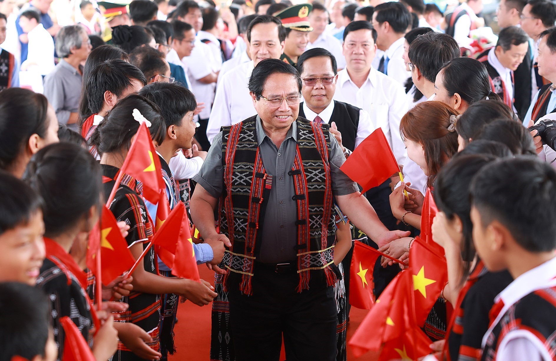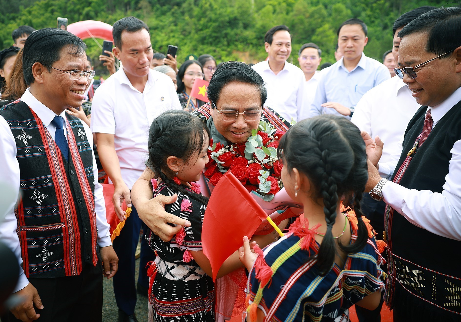 Xúc động chứng kiến niềm vui, sự phấn khởi và tình cảm ấm áp, chân thành, mộc mạc của học sinh, người dân Tây Giang dành cho đoàn công tác, Thủ tướng Chính phủ Phạm Minh Chính cho biết, Đảng, Nhà nước xác định giáo dục và đào tạo là quốc sách hàng đầu; tập trung đầu tư cho nâng cao dân trí, đào tạo nhân lực, bồi dưỡng nhân tài.
