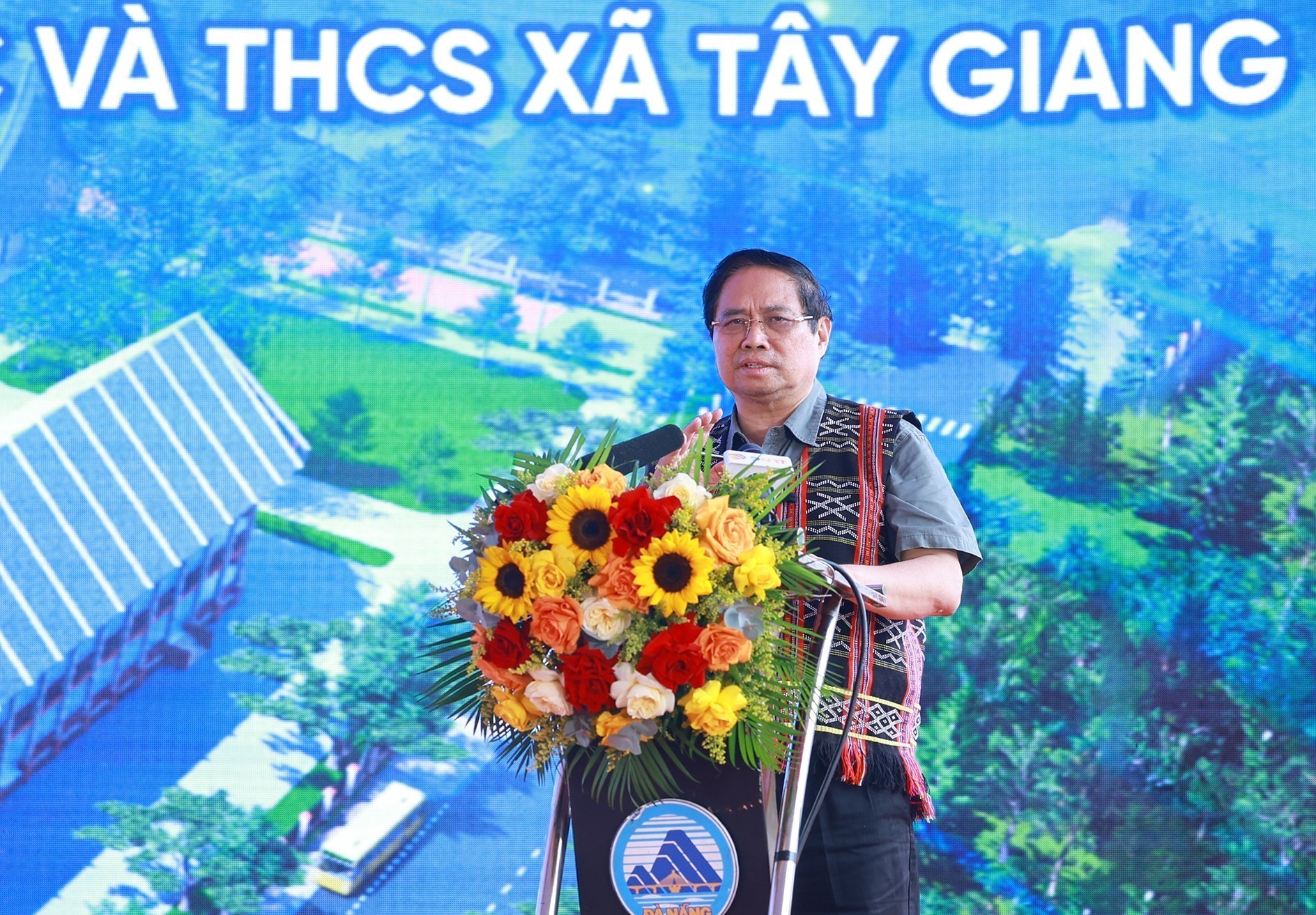 Nhấn mạnh, Trường phổ thông nội trú, bán trú Tiểu học và Trung học cơ sở Tây Giang là công trình mang ý nghĩa nhân văn cao cả, Thủ tướng Phạm Minh Chính yêu cầu các nhà thầu xây dựng phải thực hiện dự án với tất cả trách nhiệm, không để xảy ra thất thoát, lãng phí, làm tổn thương tình cảm của Đảng, Nhà nước đối với đồng bào ta, nhất là đối với đồng bào dân tộc thiểu số, miền núi, biên giới.