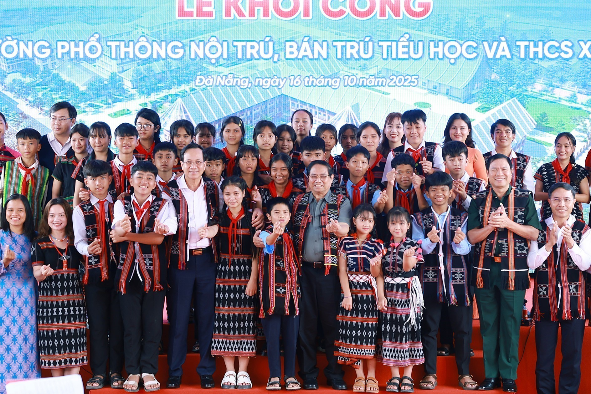 Chiều 16/10/2025, Thủ tướng Phạm Minh Chính dự Lễ khởi công dự án Trường phổ thông nội trú, bán trú Tiểu học và Trung học cơ sở xã Tây Giang, thành phố Đà Nẵng.