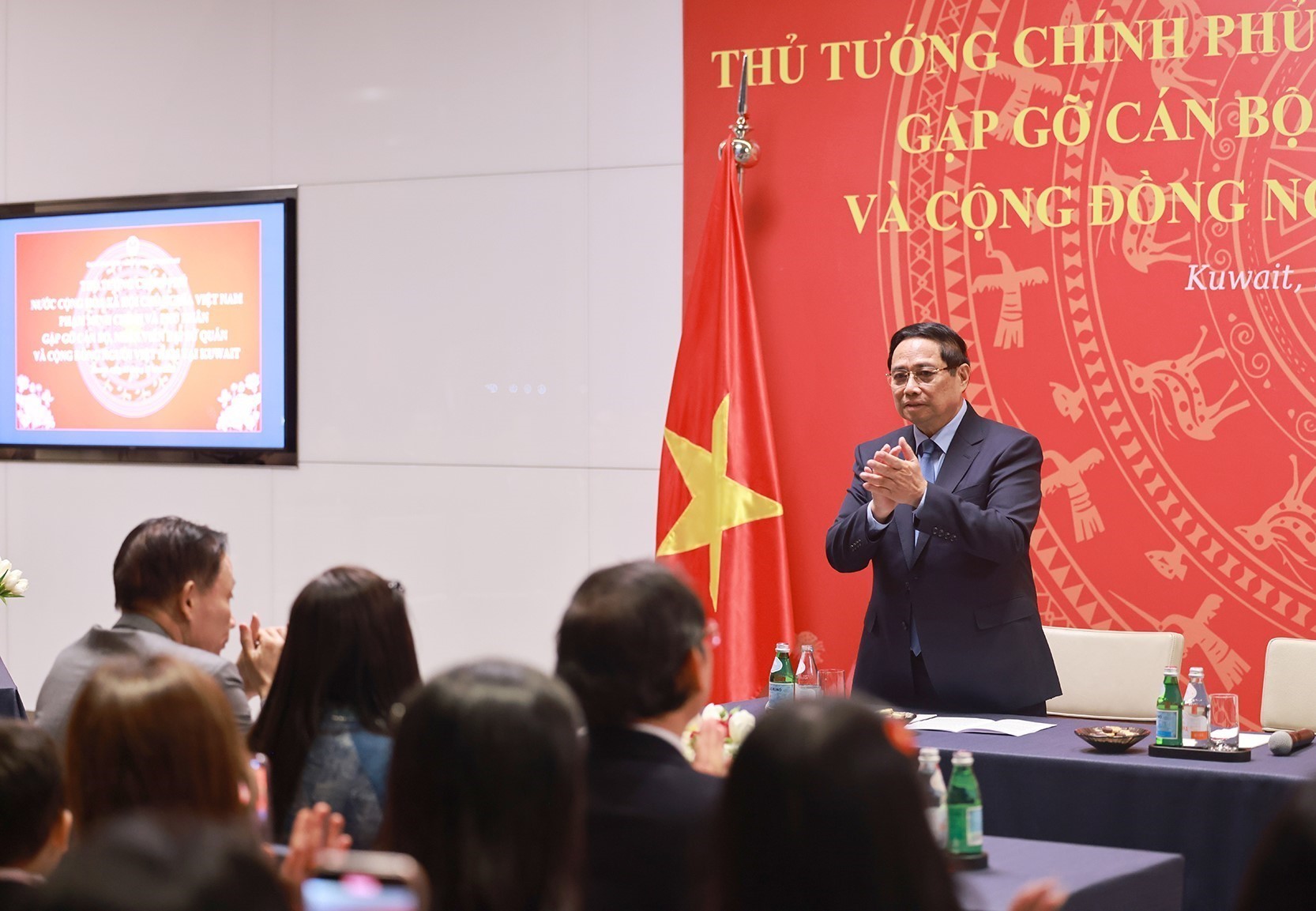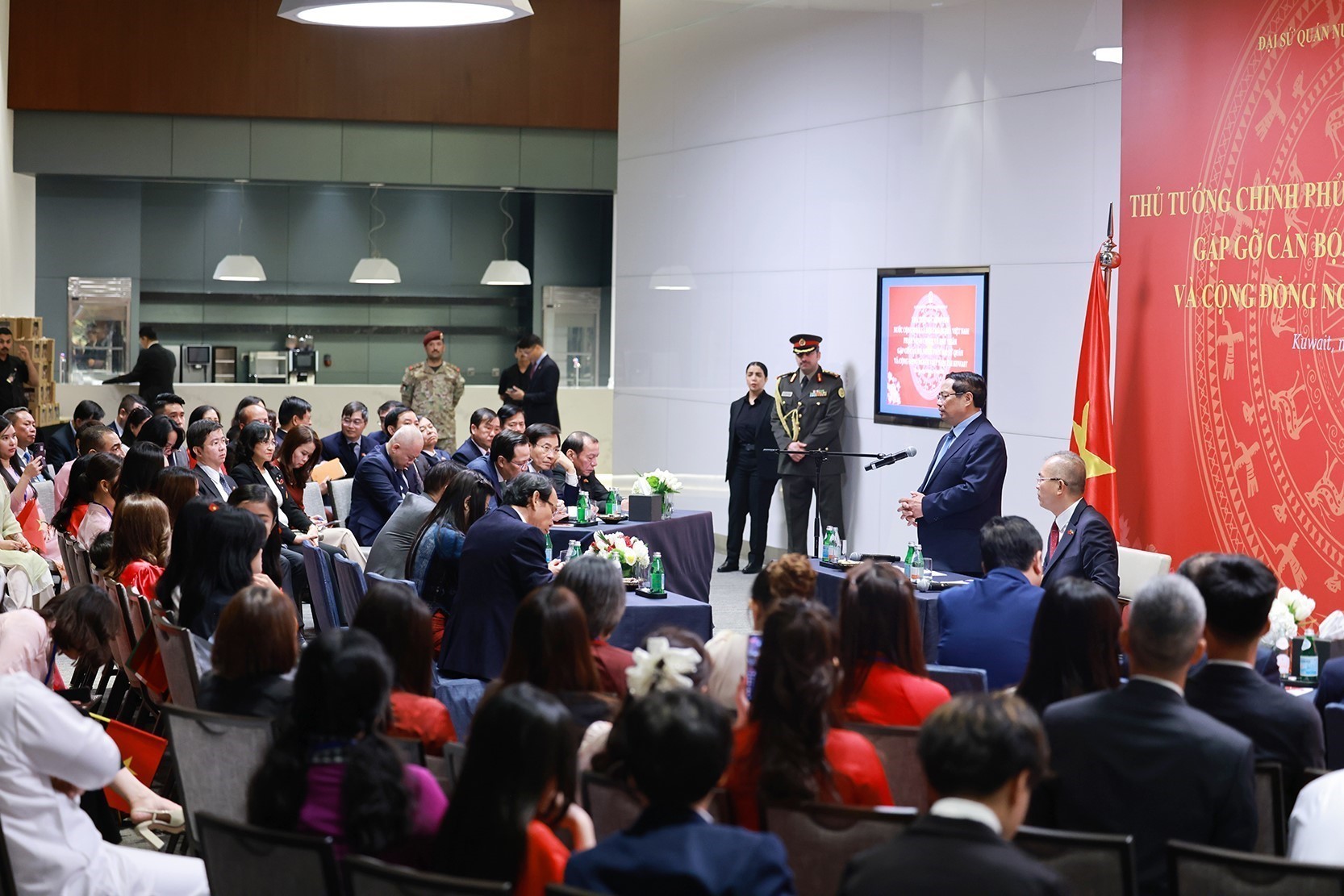 Nhân chuyến thăm chính thức Nhà nước Kuwait, chiều 16/11/2025 (giờ địa phương), Thủ tướng Phạm Minh Chính và Phu nhân gặp cán bộ Đại sứ quán và cộng đồng người Việt Nam tại Kuwait.