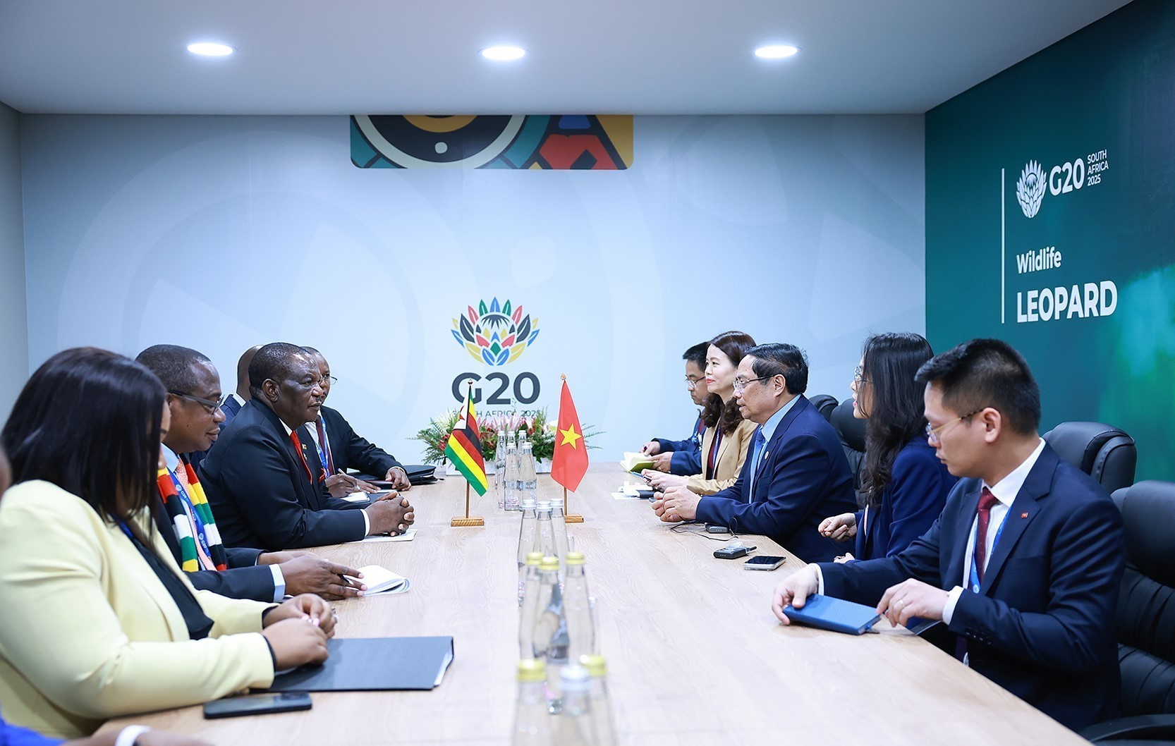 Nhân chuyến tham dự Hội nghị Thượng đỉnh G20 tại Nam Phi, chiều 22/11/2025 (giờ địa phương), Thủ tướng Phạm Minh Chính gặp Phó Tổng thống Zimbabwe Constantino Chiwenga.