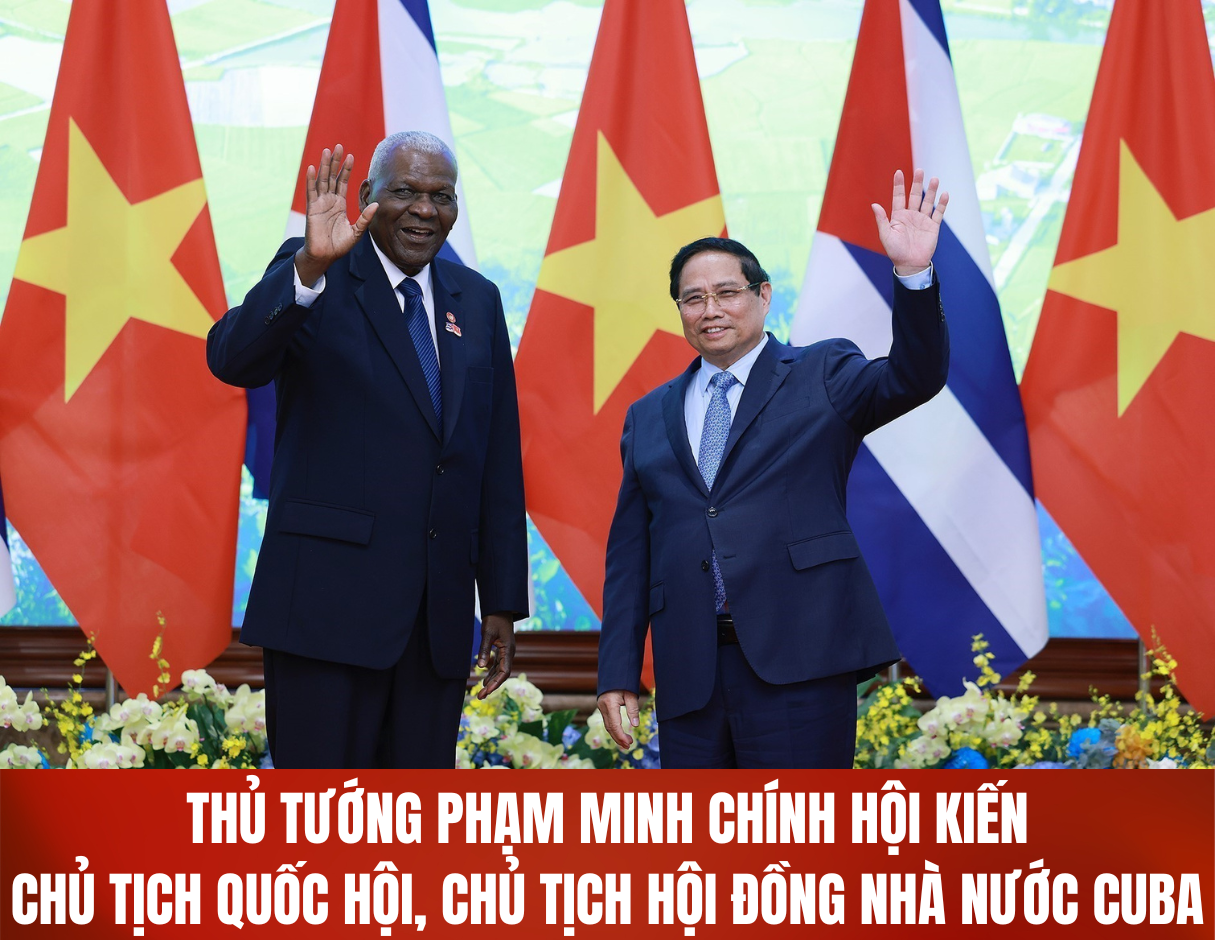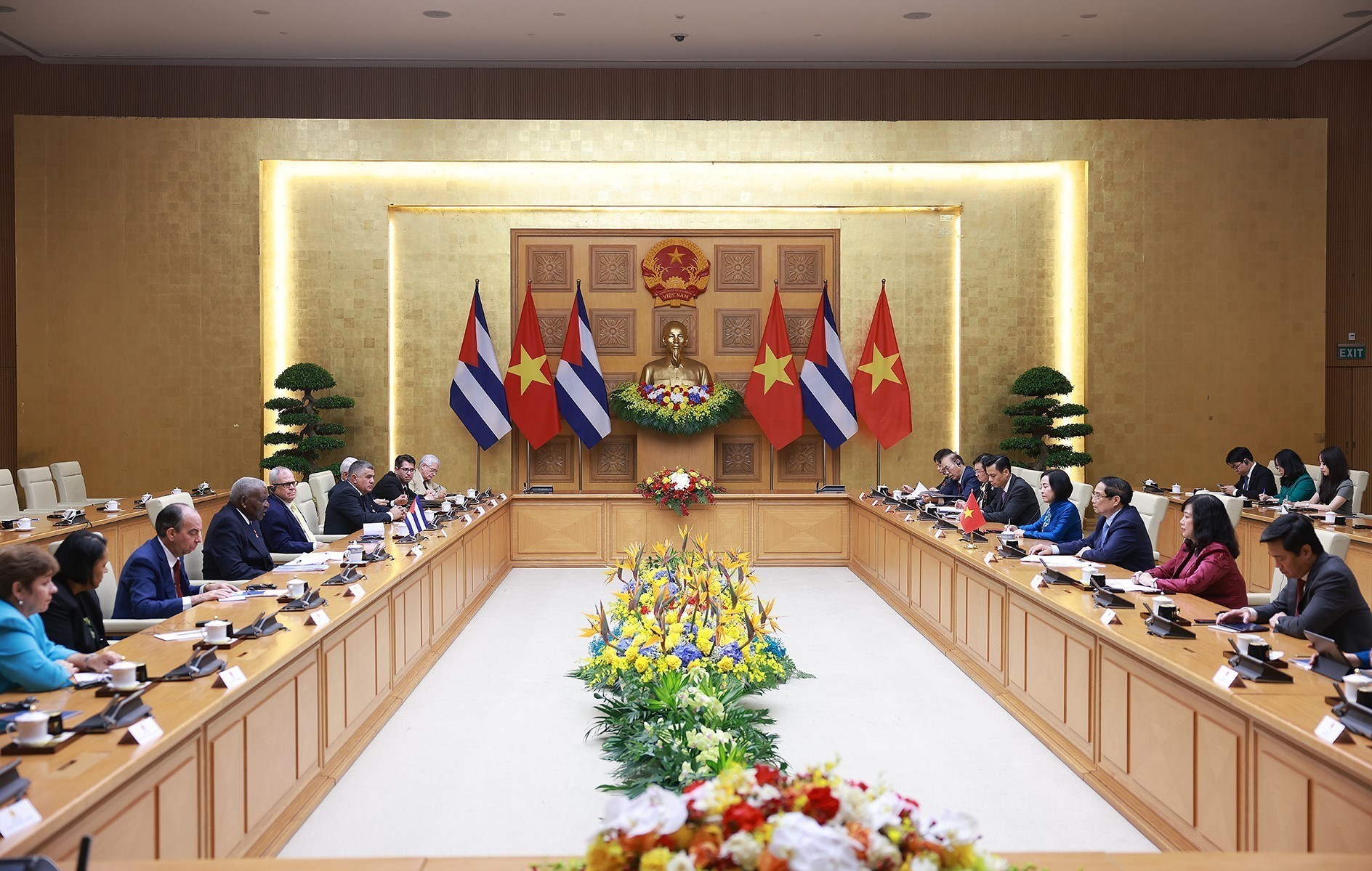 Chiều 1/10/2025, tại Hà Nội, Thủ tướng Phạm Minh Chính hội kiến Chủ tịch Quốc hội Chính quyền nhân dân và Hội đồng Nhà nước Cuba Esteban Lazo Hernández thăm chính thức Việt Nam và đồng chủ trì Phiên họp thứ hai của Ủy ban hợp tác liên nghị viện Việt Nam - Cuba.
