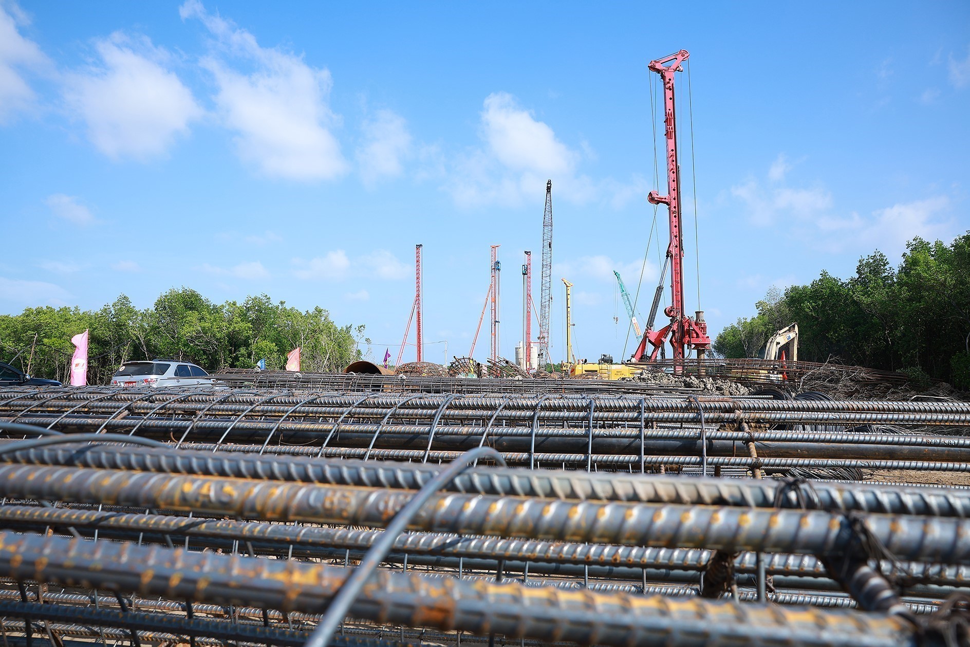 Dự án thi công dự án tuyến đường bộ cao tốc Cà Mau – Đất Mũi. Ảnh: Dương Giang-TTXVN