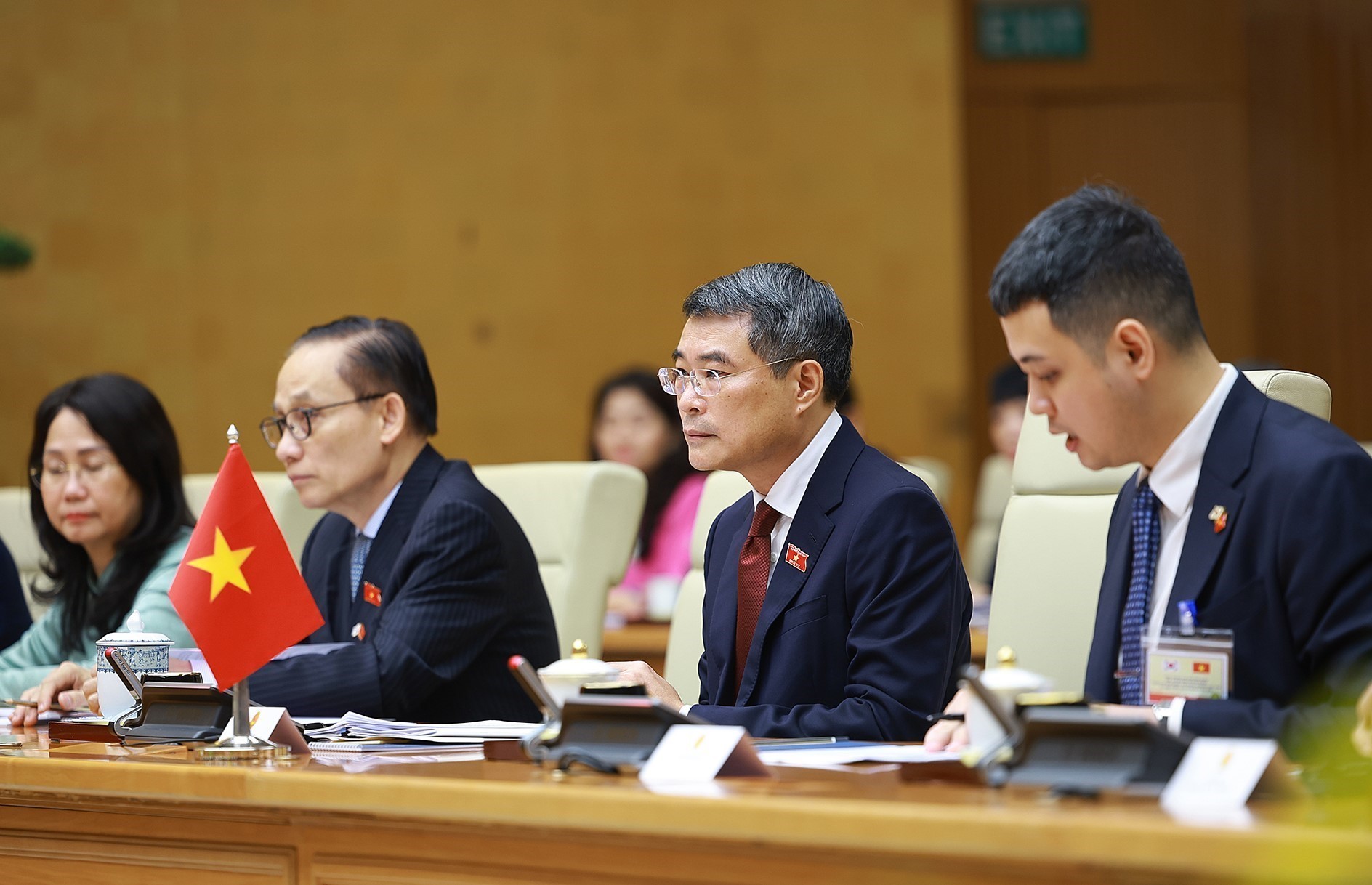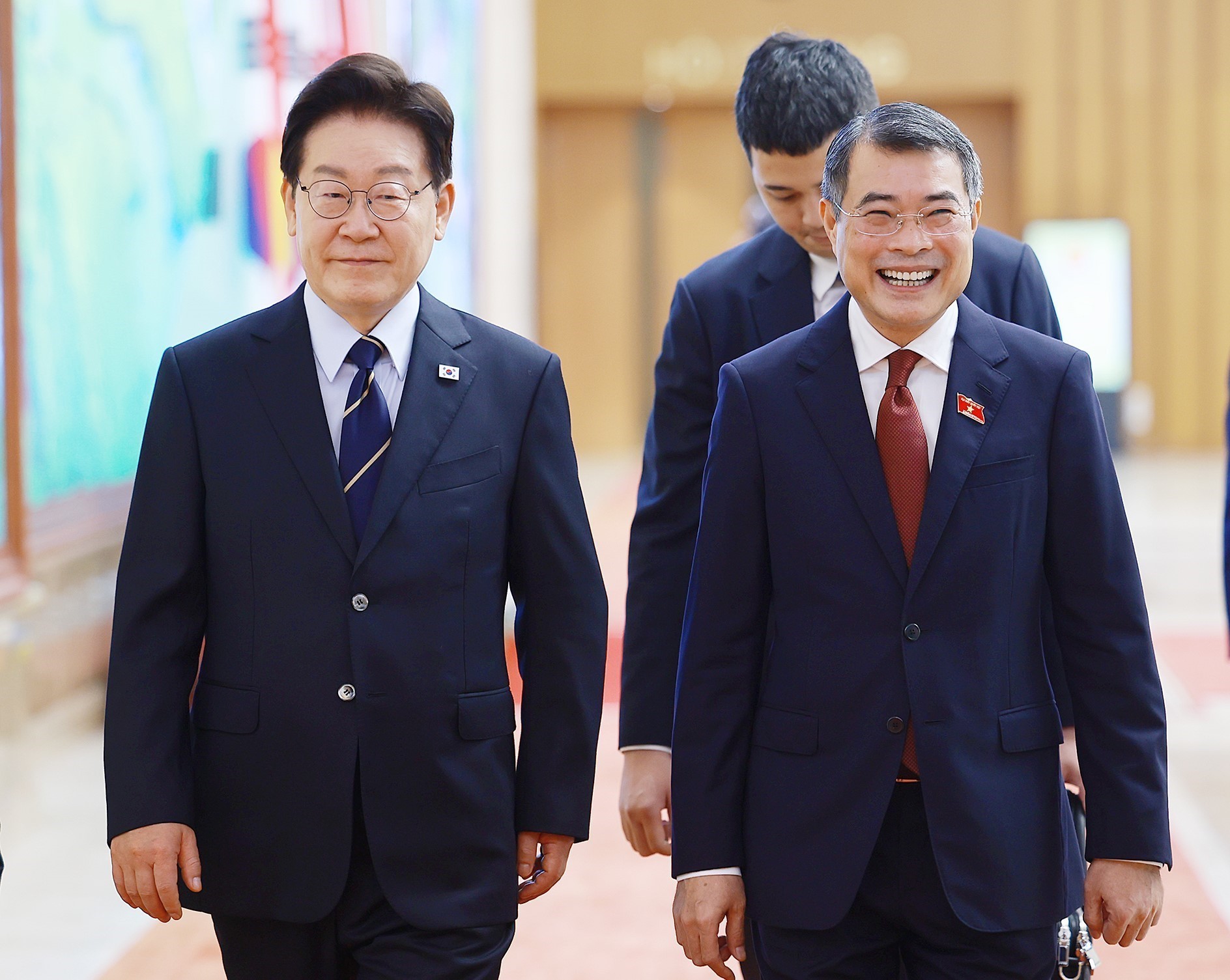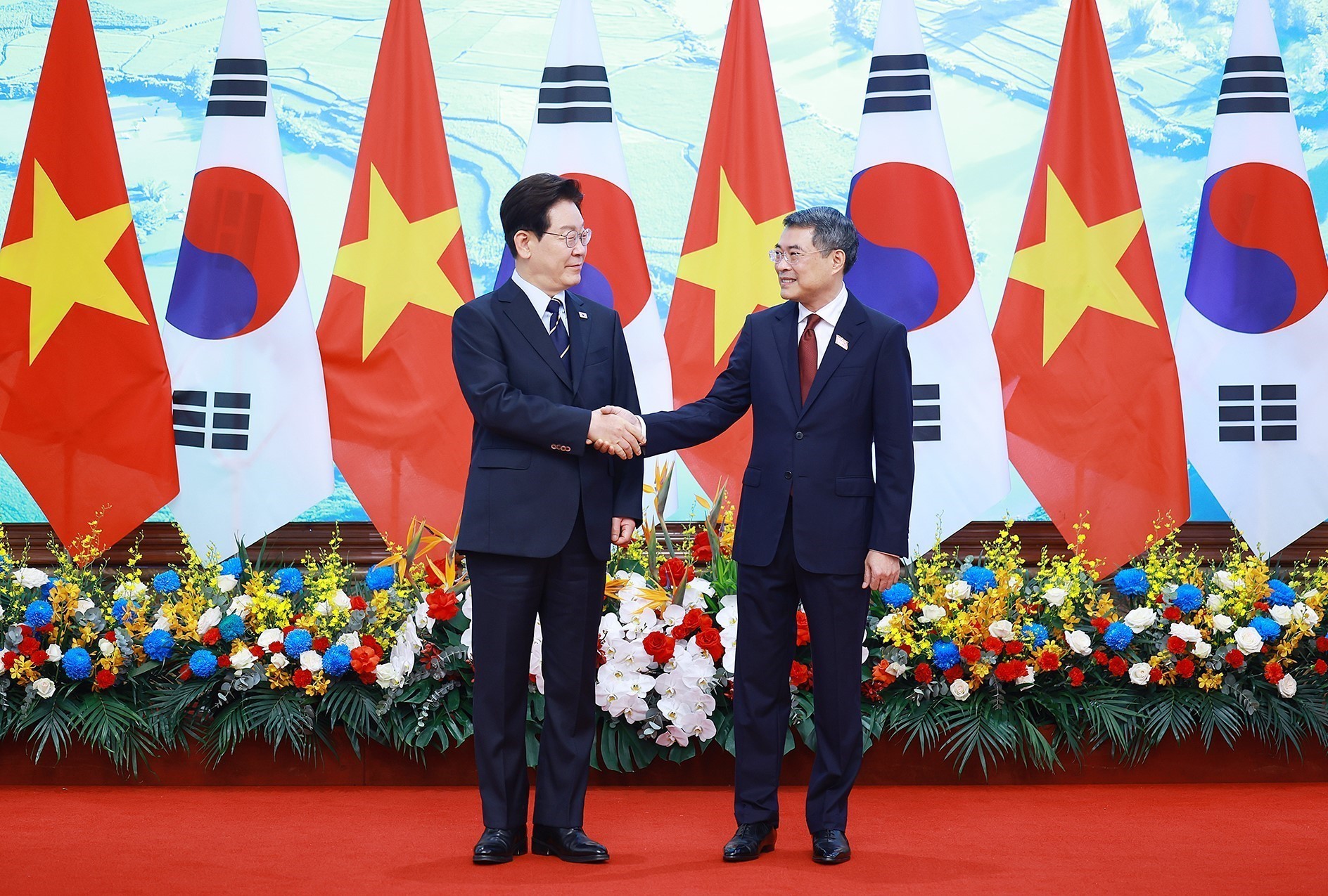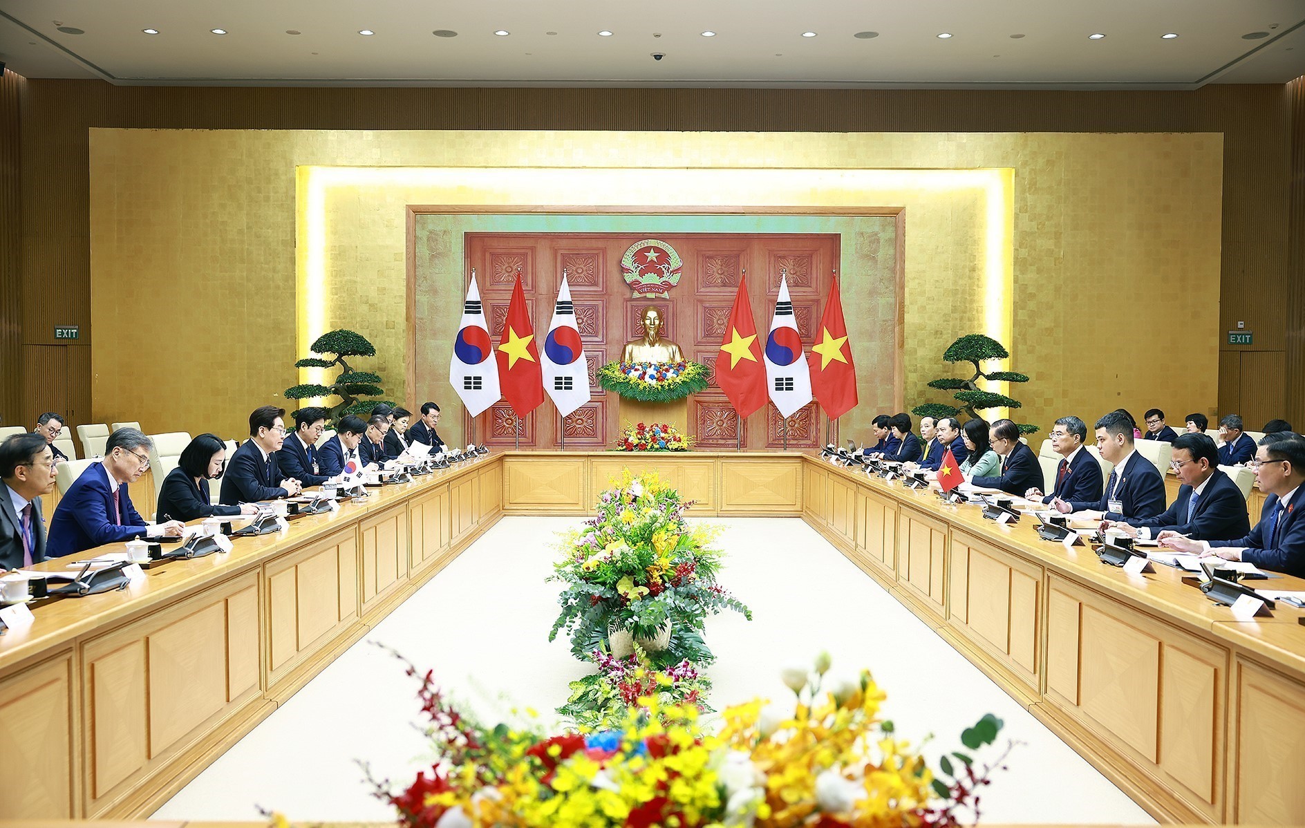 Tổng thống Lee Jae Myung và đoàn Hàn Quốc tại cuộc hội kiến Thủ tướng Lê Minh Hưng. Ảnh: Dương Giang – TTXVN