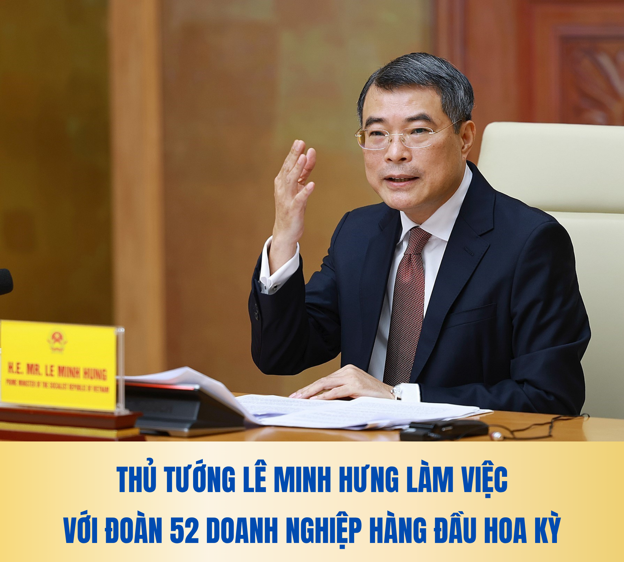 Chiều 16/4, tại Trụ sở Chính phủ, Thủ tướng Chính phủ Lê Minh Hưng làm việc với Đoàn lãnh đạo 52 doanh nghiệp hàng đầu Hoa Kỳ do ông Brian McFeeters, Quyền Chủ tịch kiêm Tổng Giám đốc Hội đồng Kinh doanh Hoa Kỳ - ASEAN (USABC) dẫn đầu đang thăm, làm việc, tìm hiểu cơ hội hợp tác đầu tư tại Việt Nam.