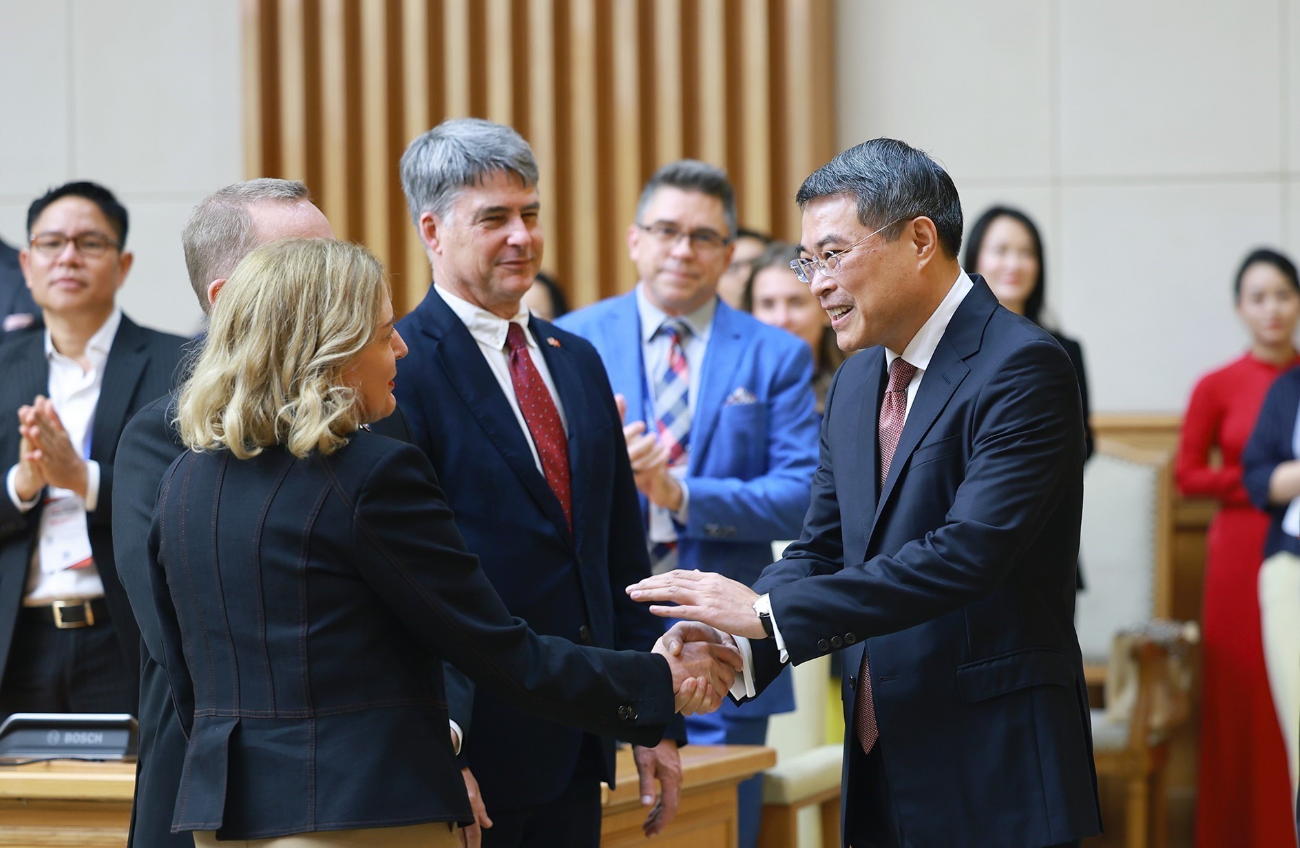 Đoàn doanh nghiệp cấp cao Hội đồng Kinh doanh Hoa Kỳ - ASEAN (USABC) tham dự buổi tiếp và làm việc với Thủ tướng Lê Minh Hưng. Ảnh: Dương Giang – TTXVN