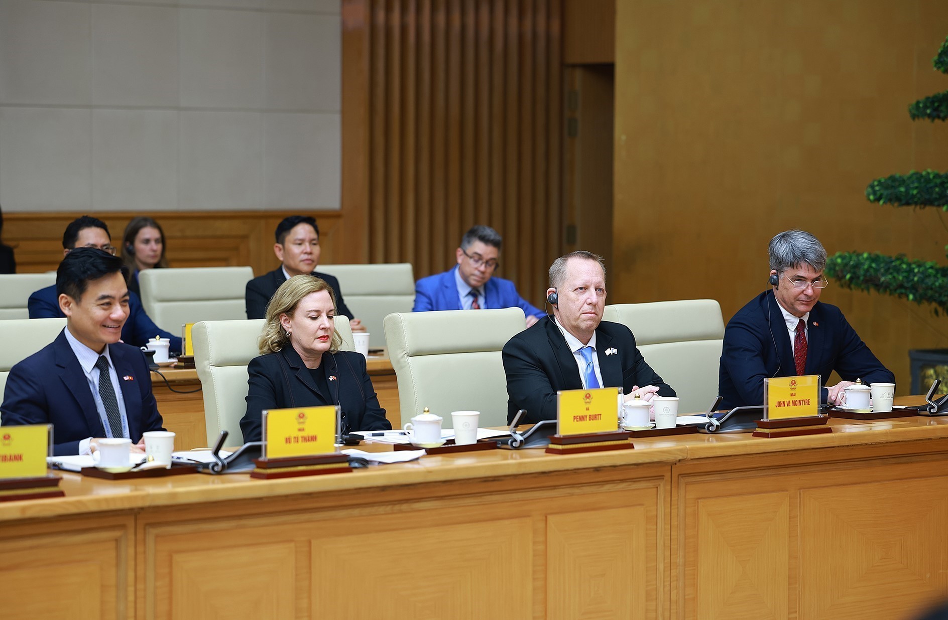 Đề cập một số lĩnh vực hợp tác cụ thể, Thủ tướng nêu rõ Chính phủ ủng hộ, hoan nghênh các tập đoàn, doanh nghiệp năng lượng hàng đầu của Hoa Kỳ đầu tư tại Việt Nam, góp phần bảo đảm an ninh năng lượng quốc gia và phát triển thị trường năng lượng bình đẳng, minh bạch, hiệu quả.