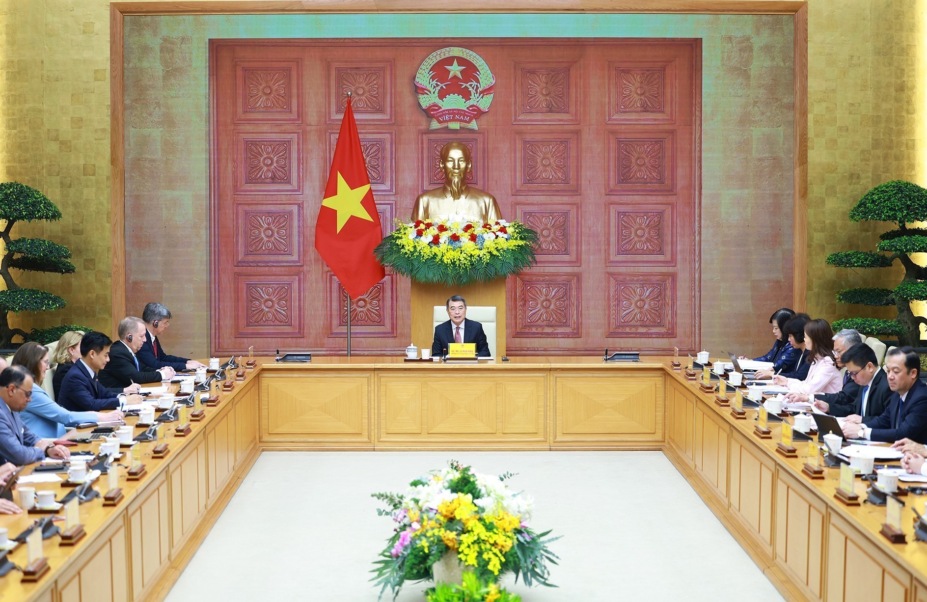Thủ tướng Lê Minh Hưng tiếp và làm việc với Đoàn doanh nghiệp cấp cao Hội đồng Kinh doanh Hoa Kỳ - ASEAN (USABC). Ảnh: Dương Giang – TTXVN