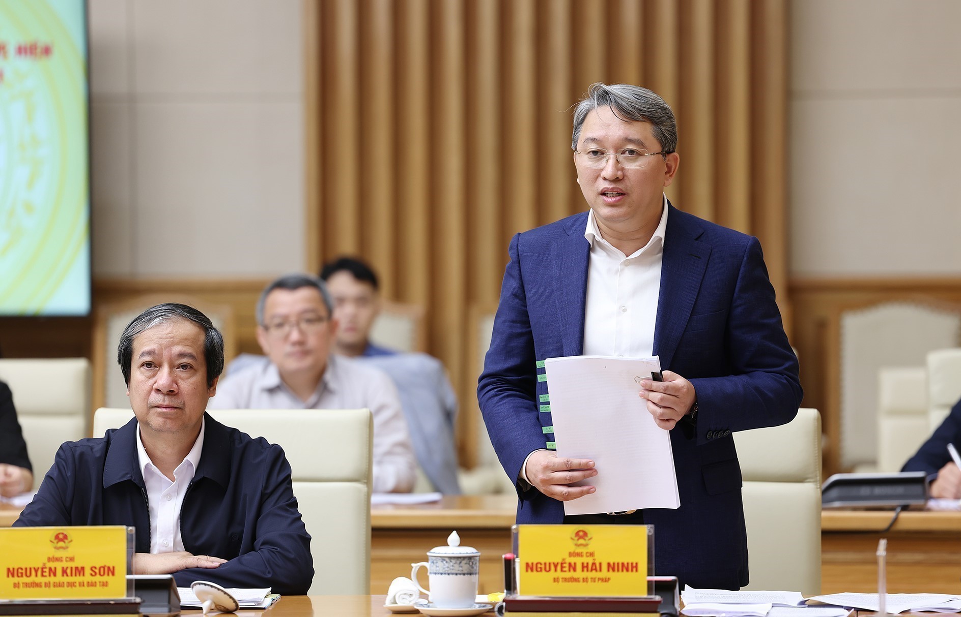 Bộ trưởng Bộ Tư pháp Nguyễn Hải Ninh phát biểu. Ảnh: Dương Giang-TTXVN
