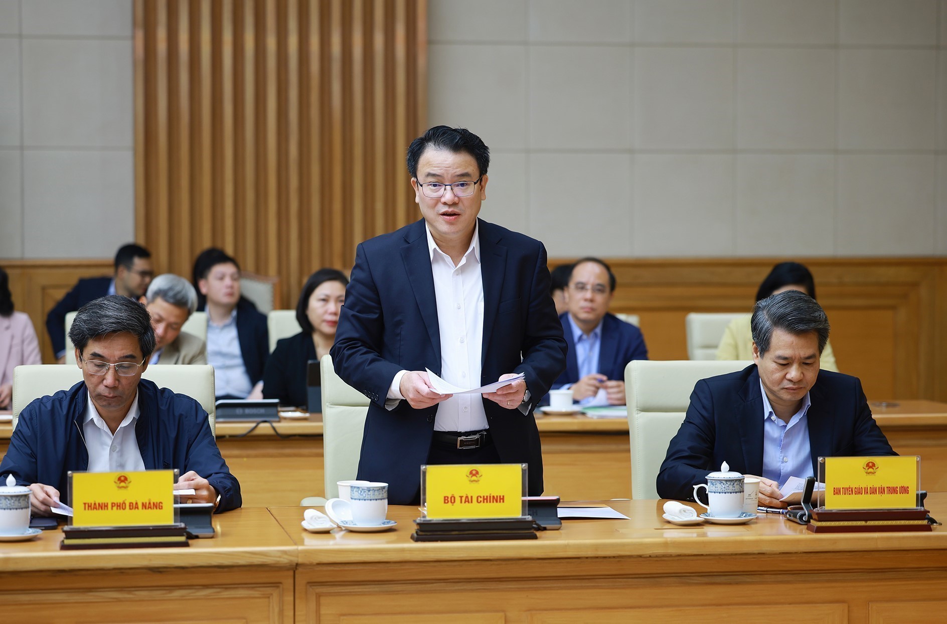 Thứ trưởng Bộ Tài chính Trần Quốc Phương báo cáo tình hình triển khai Nghị quyết số 68-NQ/TW của Bộ Chính trị về phát triển kinh tế tư nhân. Ảnh: Dương Giang-TTXVN
