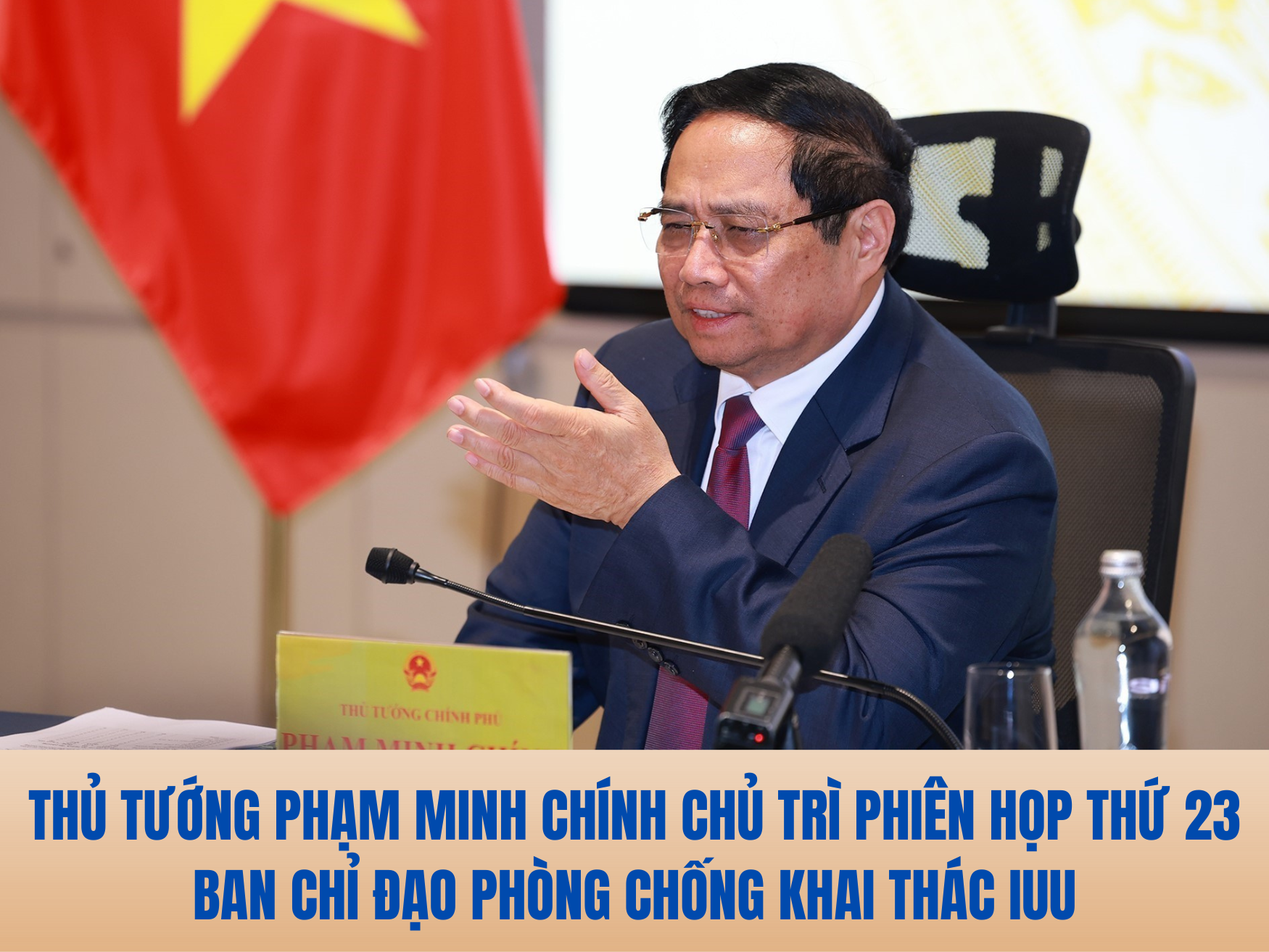 Chiều tối 25/11, tại Thành phố Hồ Chí Minh, Thủ tướng Chính phủ Phạm Minh Chính chủ trì Phiên họp lần thứ 23 của Ban Chỉ đạo Quốc gia về chống khai thác hải sản bất hợp pháp, không báo cáo và không theo quy định (IUU). Phiên họp được tổ chức trực tuyến tại đầu cầu Thành phố Hồ Chí Minh, Trụ sở Chính phủ và 21 tỉnh, thành phố ven biển.