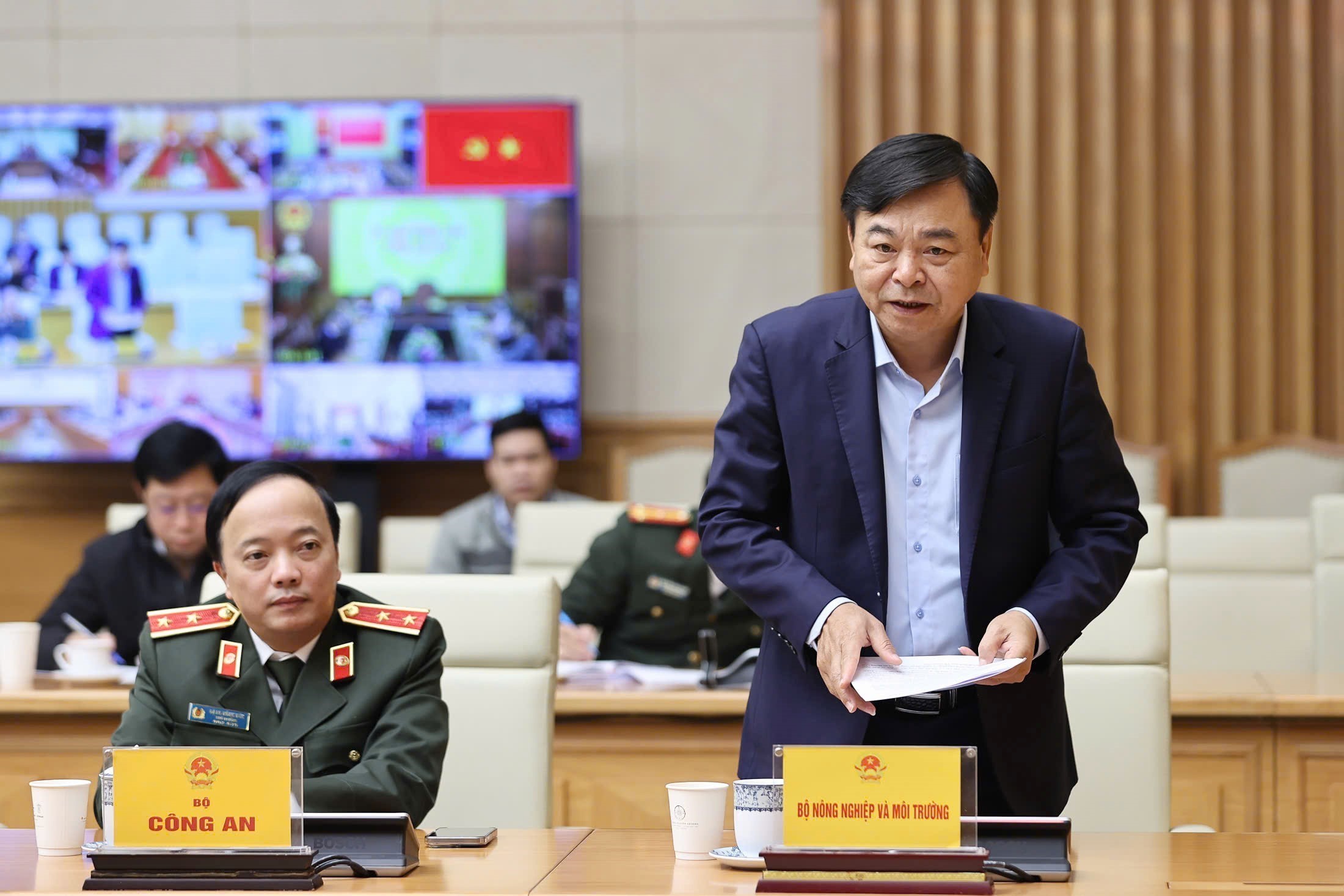 Thứ trưởng Bộ Nông nghiệp và Môi trường Nguyễn Hoàng Hiệp báo cáo tiến độ xây dựng, sửa chữa nhà ở cho các gia đình có nhà bị thiệt hại do bão, lũ tại khu vực miền Trung. Ảnh: Dương Giang-TTXVN