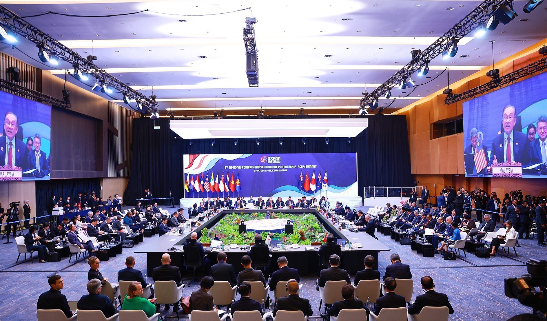 Trong khuôn khổ Hội nghị Cấp cao ASEAN lần thứ 47 và các Hội nghị Cấp cao liên quan diễn ra tại Kuala Lumpur (Malaysia) ngày 27/10, Thủ tướng Chính phủ Phạm Minh Chính đã cùng các nhà lãnh đạo các nước ASEAN và đối tác (Australia, New Zealand, Nhật Bản, Hàn Quốc, Trung Quốc) tham dự Hội nghị Cấp cao Hiệp định Đối tác Kinh tế Toàn diện Khu vực (RCEP) lần thứ 5 dưới sự chủ trì của Thủ tướng nước chủ nhà Anwar Ibrahim - nước Chủ tịch ASEAN 2025.