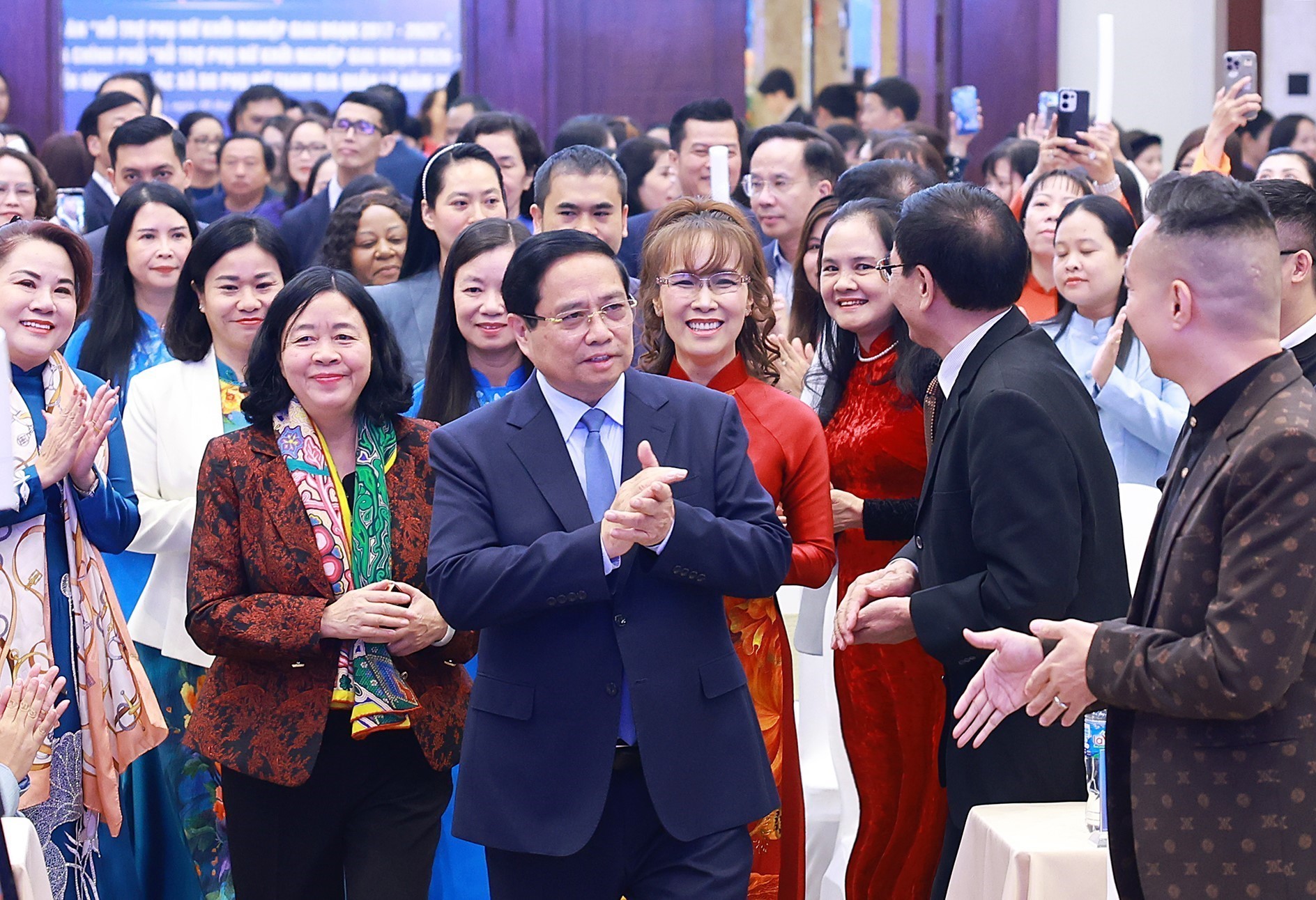 Thủ tướng Phạm Minh Chính dự Hội nghị tổng kết đề án hỗ trợ phụ nữ khởi nghiệp và biểu dương điển hình hợp tác xã do phụ nữ tham gia quản lý năm 2025. Dương Giang-TTXVN