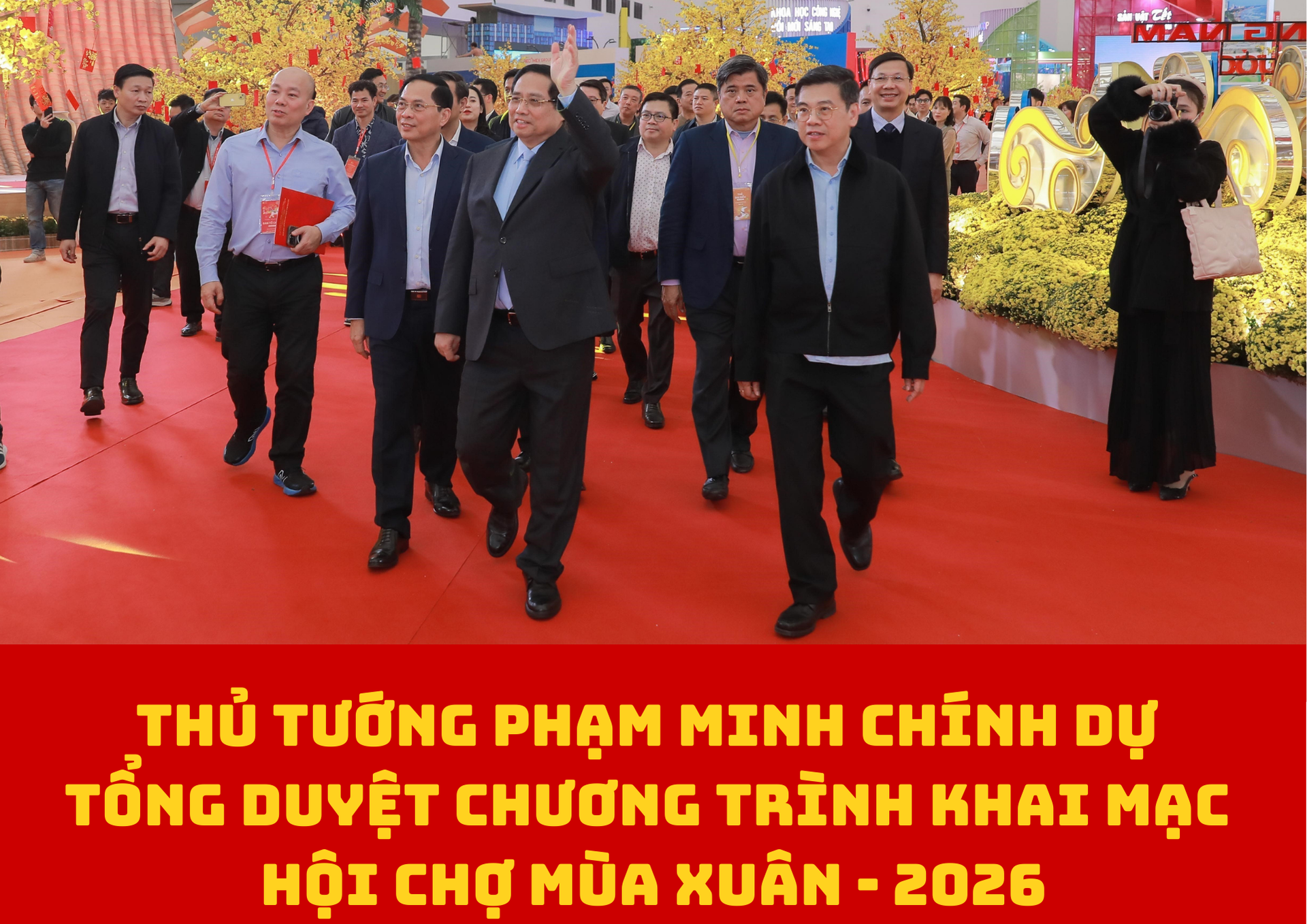 Chiều 1/2/2026, Thủ tướng Phạm Minh Chính dự tổng duyệt Lễ khai mạc Hội chợ Mùa Xuân lần thứ nhất – 2026. Hội chợ Mùa Xuân 2026 với chủ đề "Kết nối thịnh vượng – Đón Xuân huy hoàng".